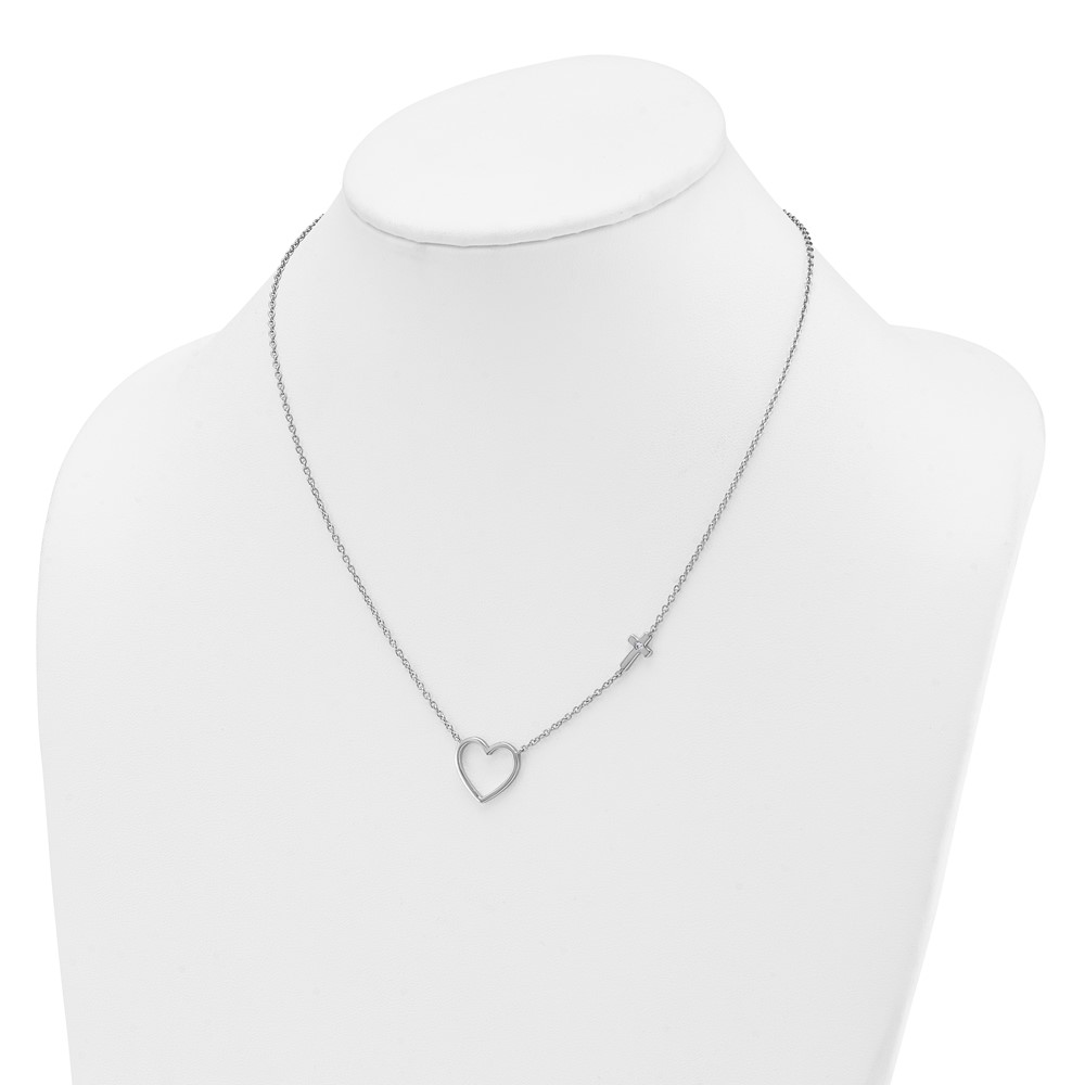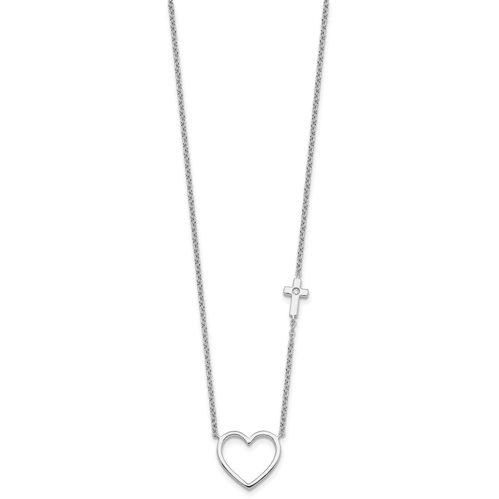 White Ice Sterling Silver Rhodium-plated Diamond Heart and Cross 18 inch Necklace plus 2 inch Extender