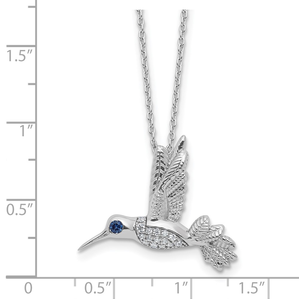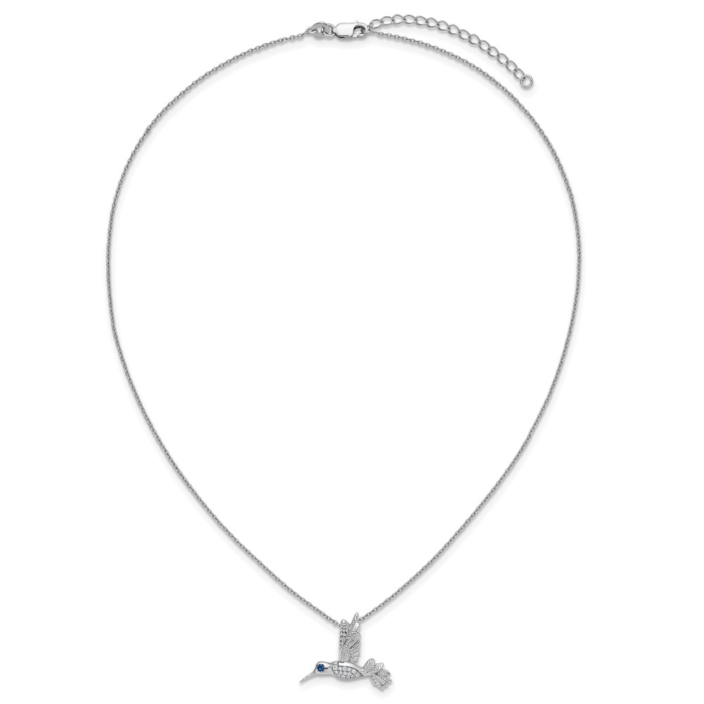 White Ice Sterling Silver Rhodium-plated Diamond and Sapphire Humming Bird 18 inch Necklace plus 2 inch Extender
