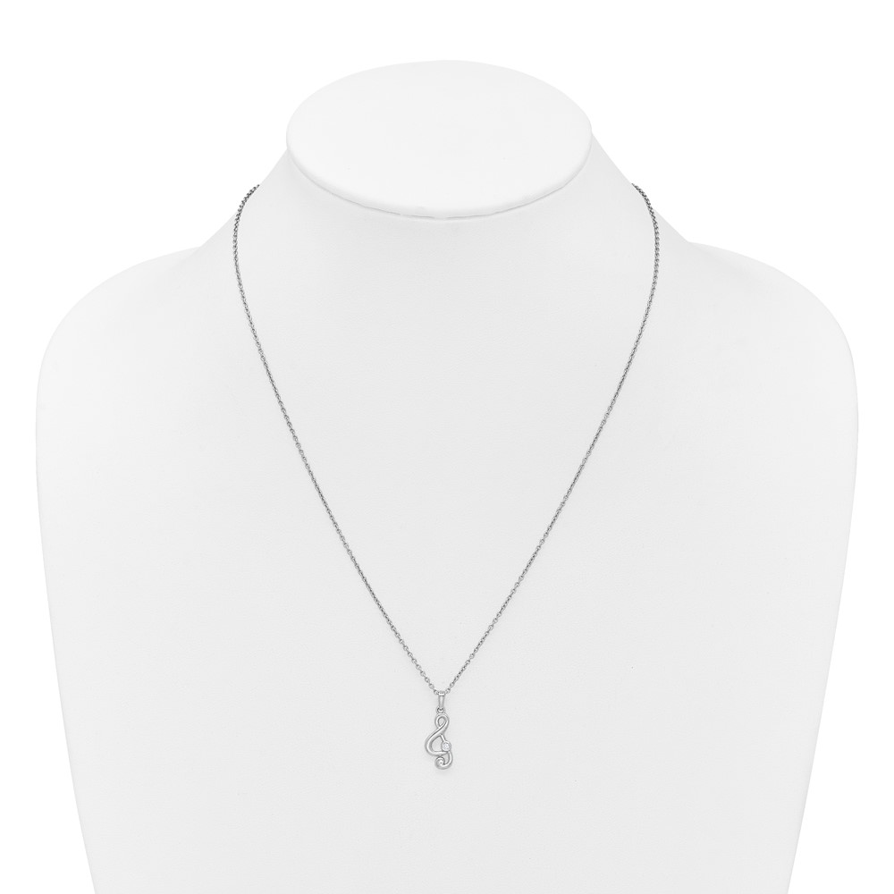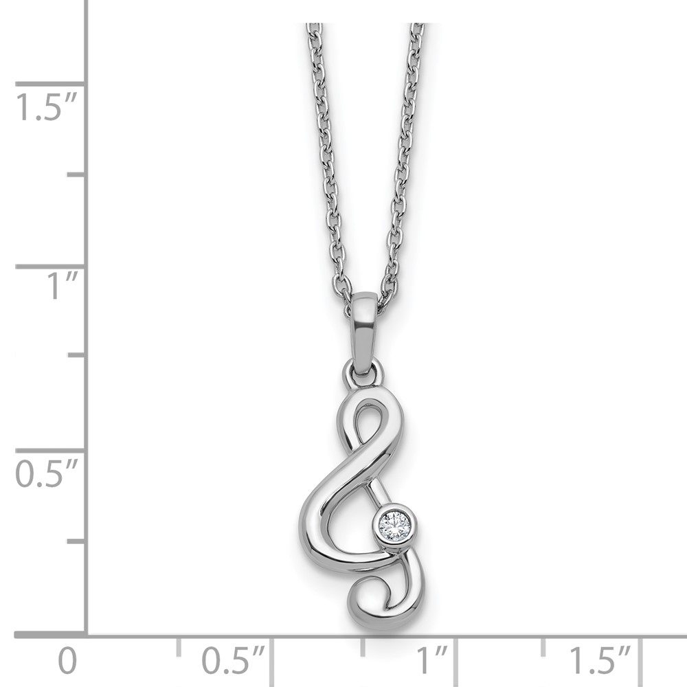 White Ice Sterling Silver Rhodium-plated Diamond Music Note 18 inch Necklace plus 2 inch Extender