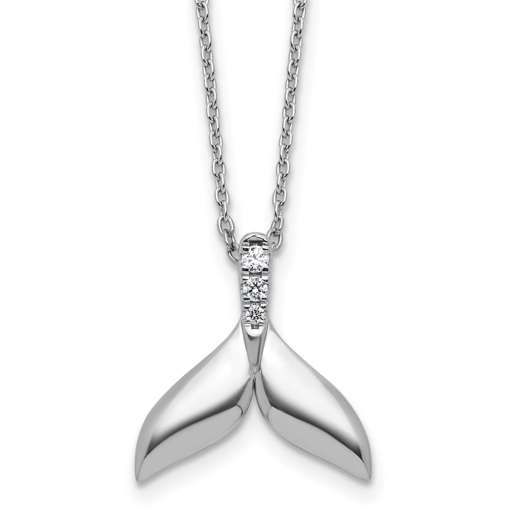 White Ice Sterling Silver Rhodium-plated Diamond Whale Tail 18 inch Necklace plus 2 inch Extender
