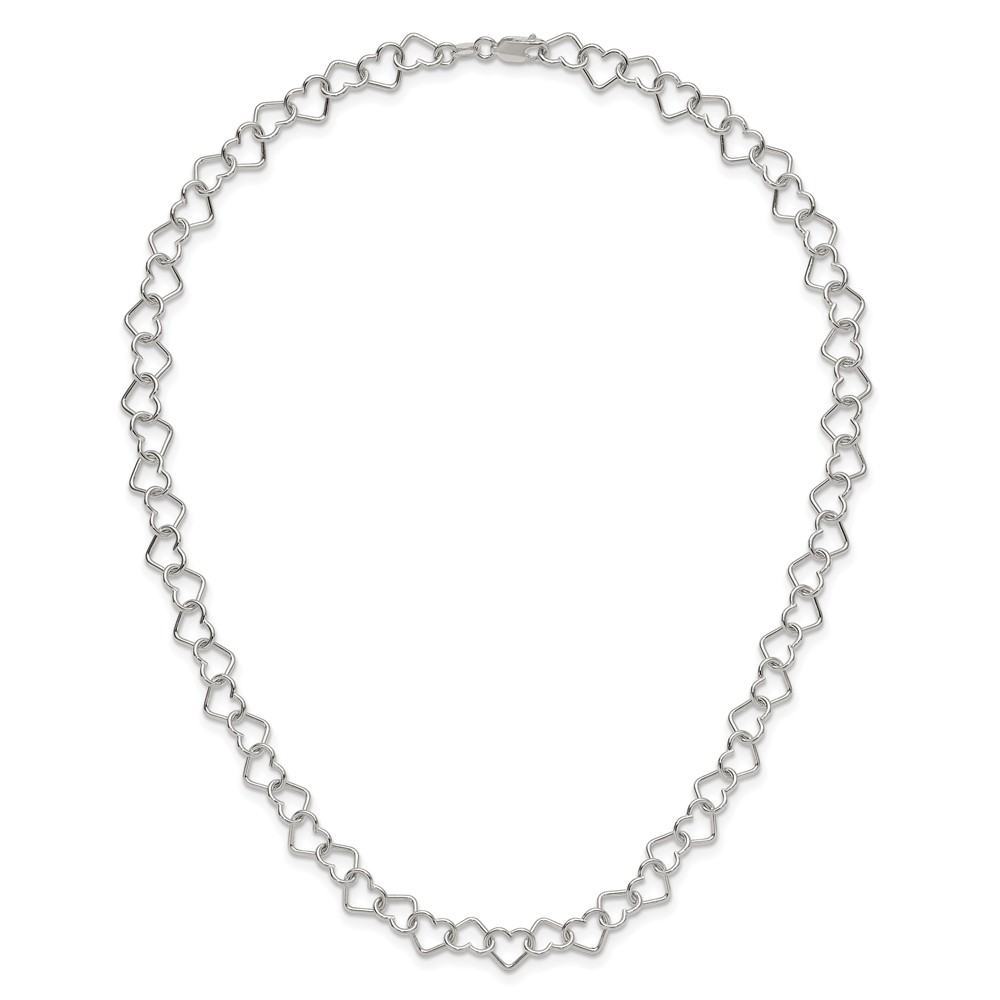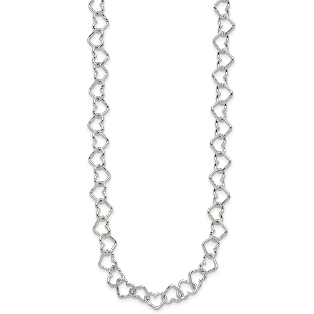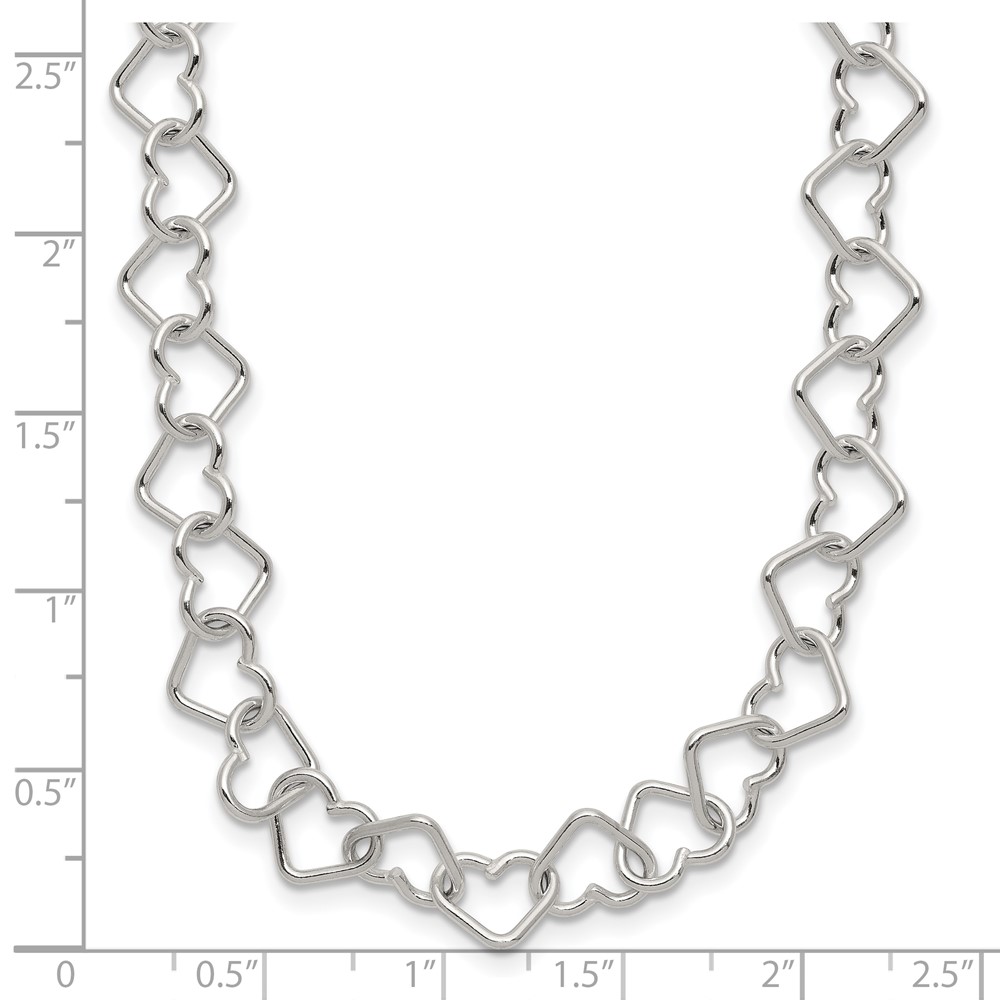 Sterling Silver 18inch Polished Fancy Heart Link Necklace