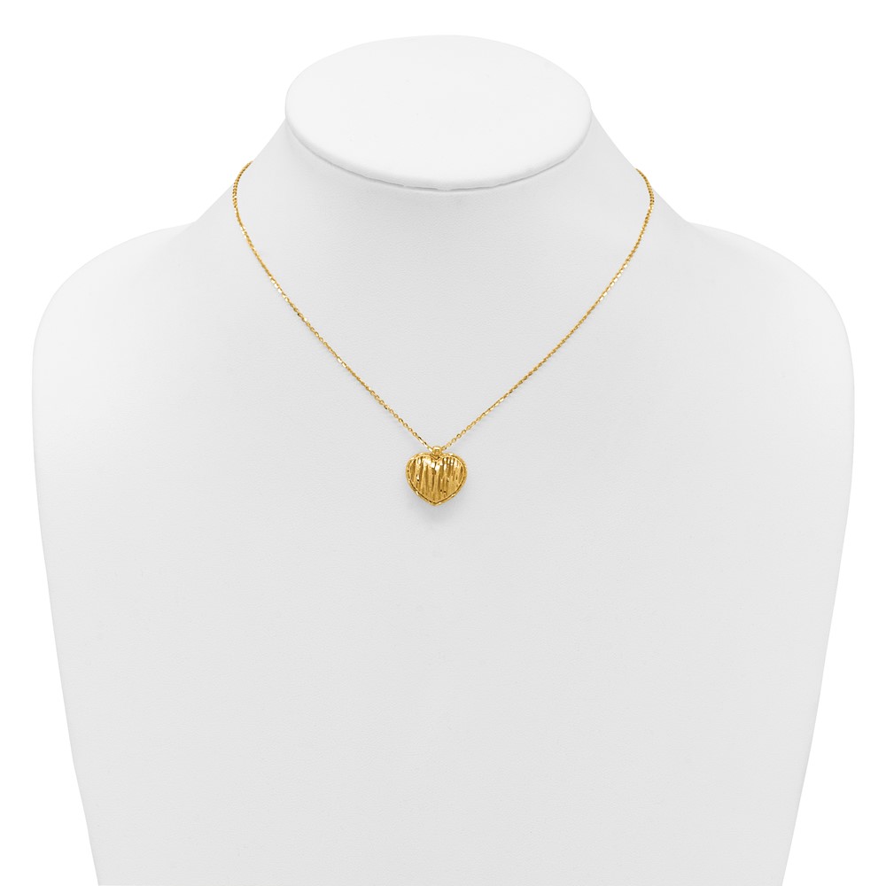 Leslie's 14K Polished / Dia-cut Puffed Heart w/2in ext. Necklace