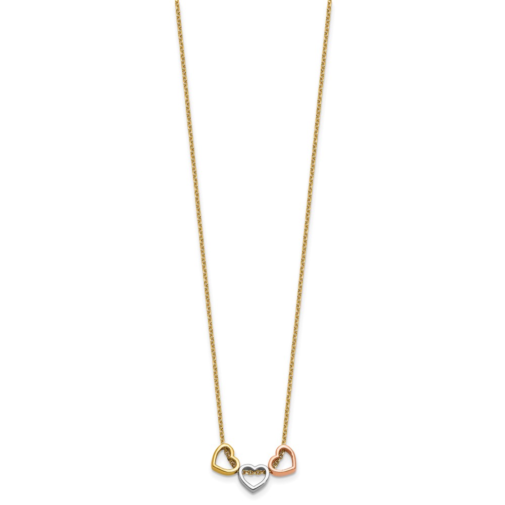 Herco 14K Tri-color Polished Three Heart 16in w/ 2in Ext Necklace