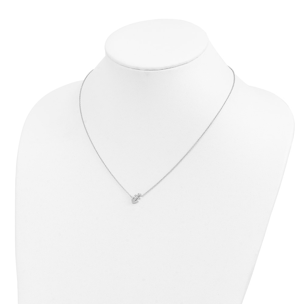 Cheryl M Sterling Silver Rhodium-plated Polished CZ Anchor 16 Inch with 2 Inch Extension Necklace