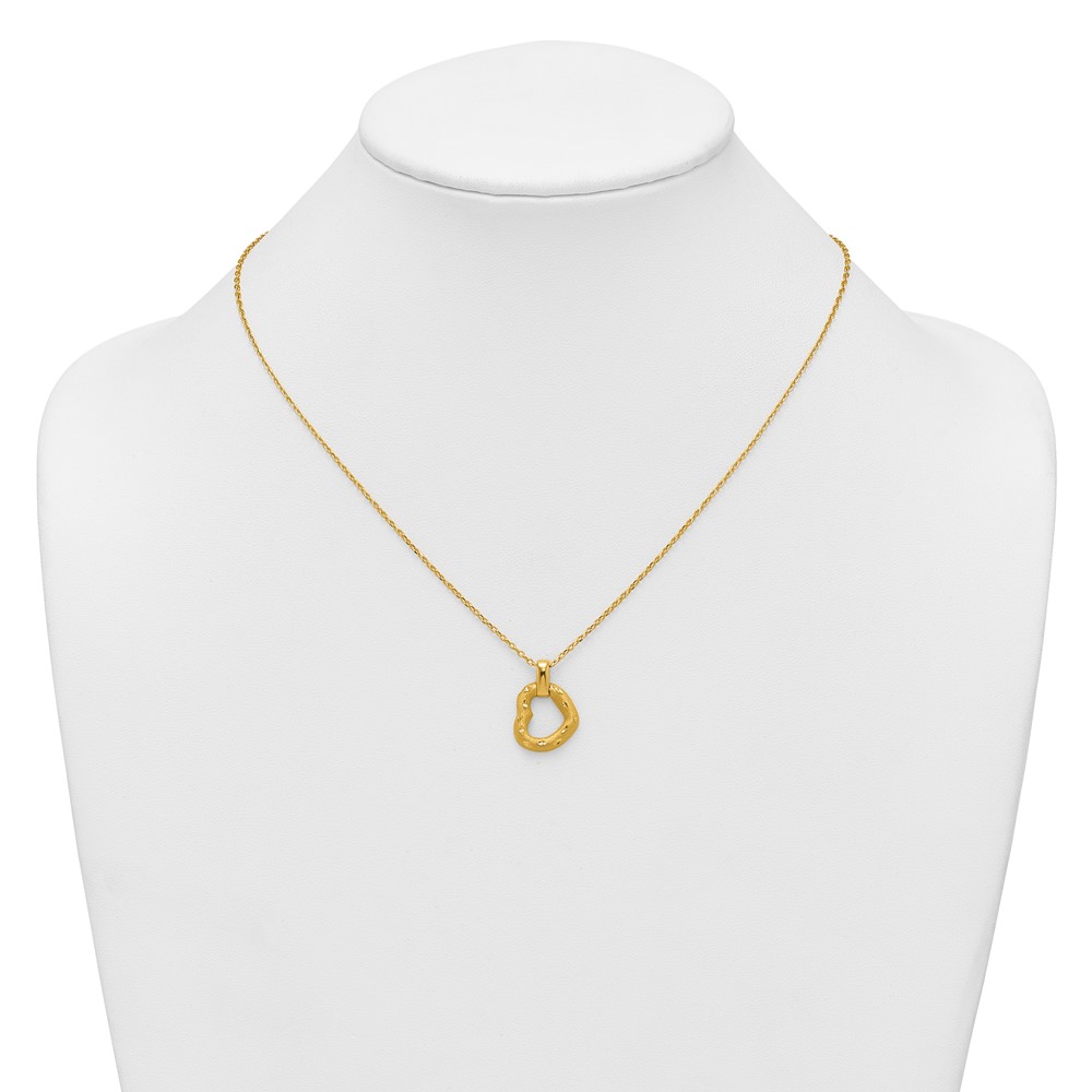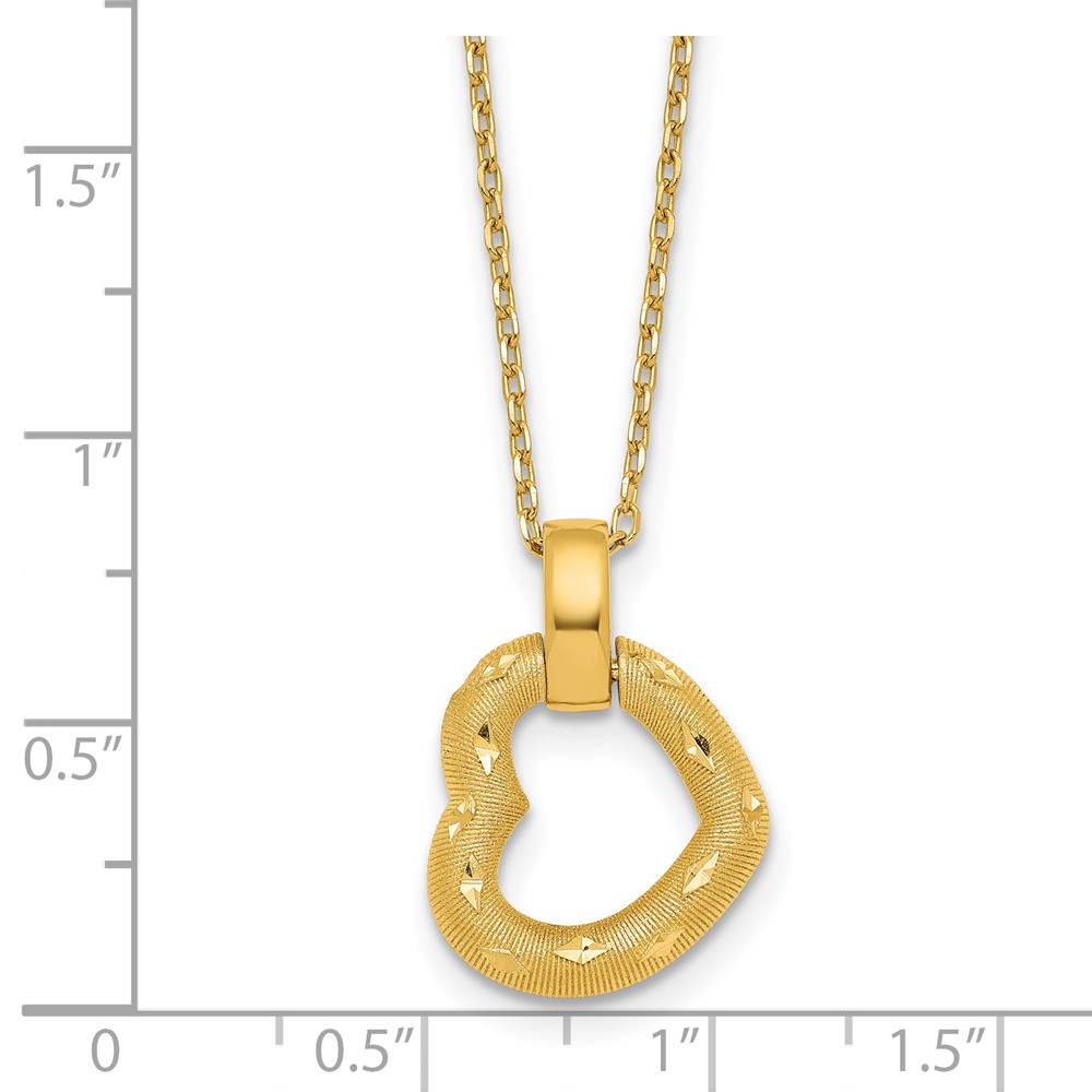 14K Polished Textured and Diamond-cut Fancy Heart Pendant 16 Inch Necklace with 2.25 Inch Extender
