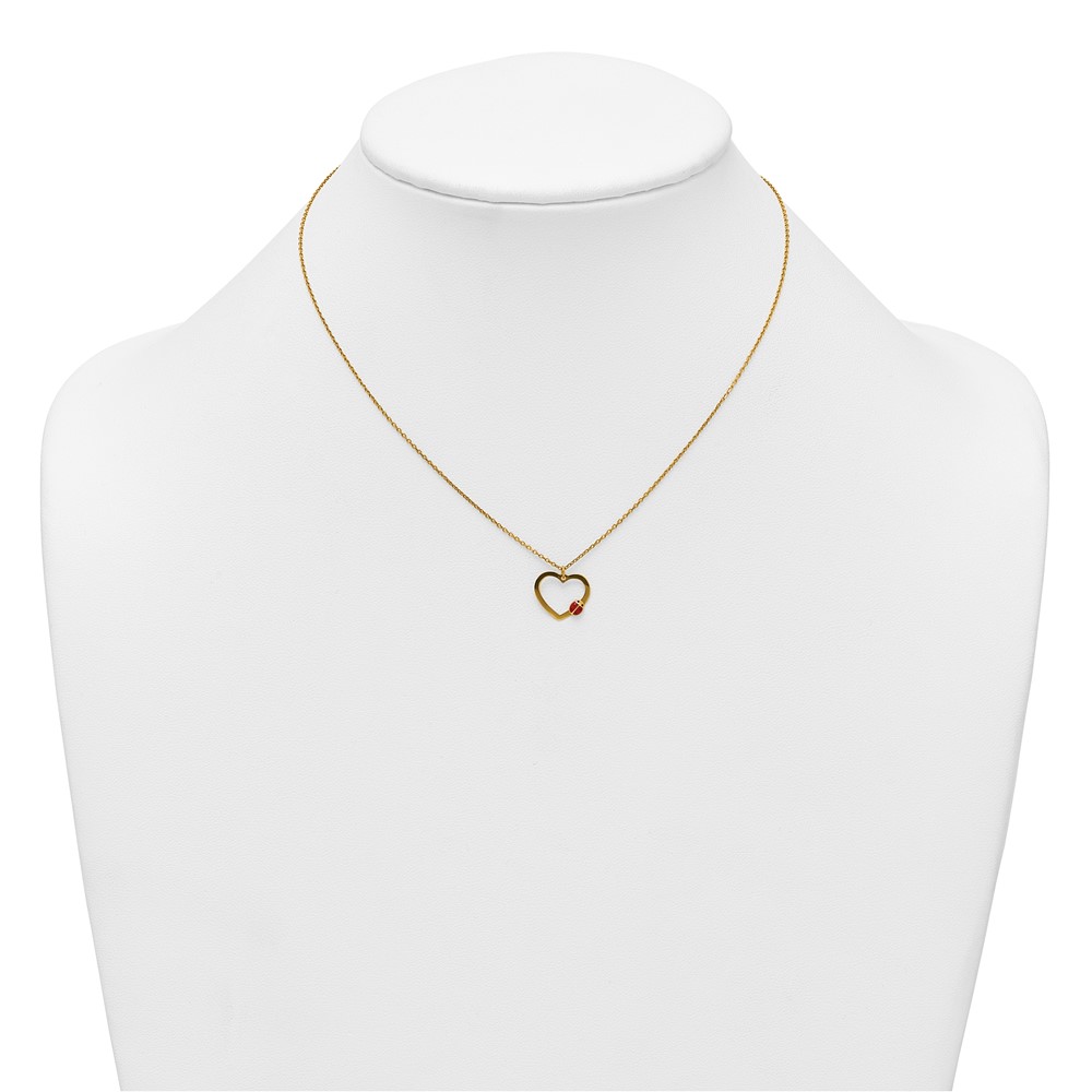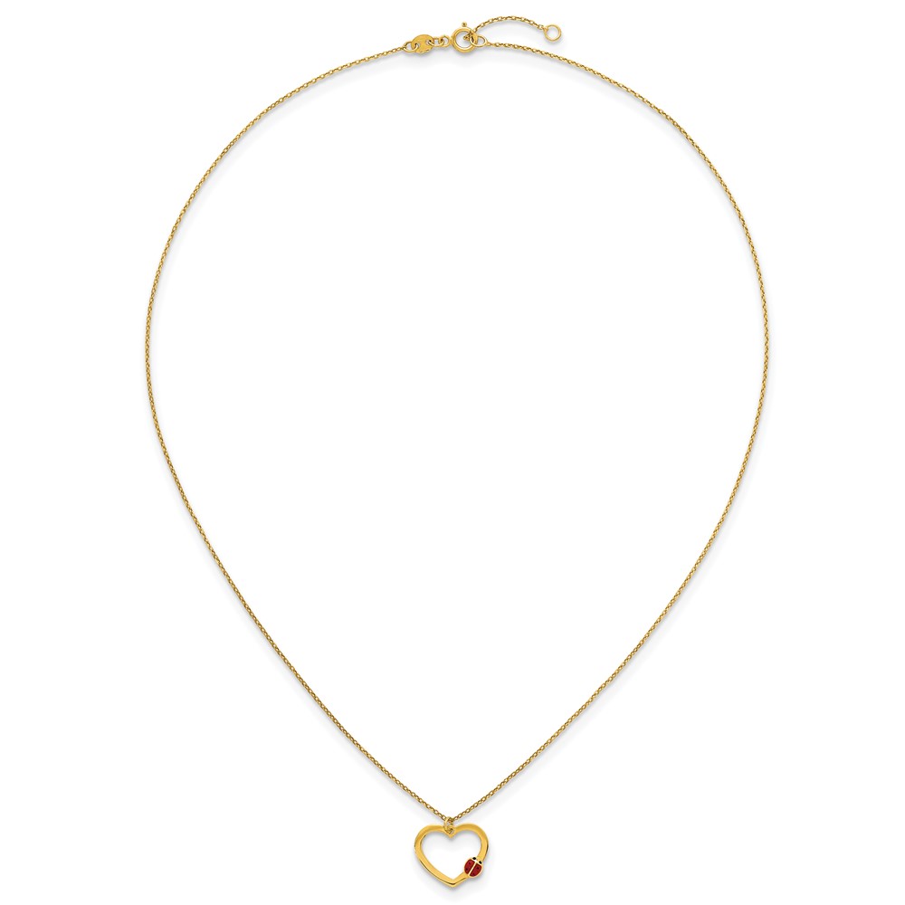 14k Polished Heart with Red and Black Enamel Ladybug 15.5 inch Childrens Necklace Plus 0.75 inch Extender