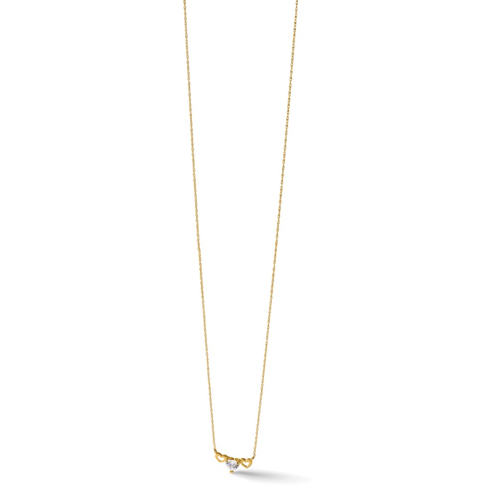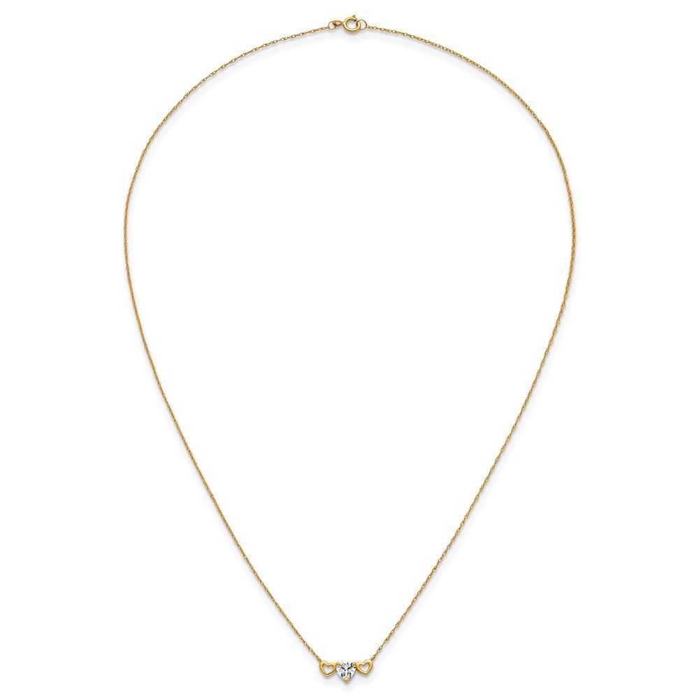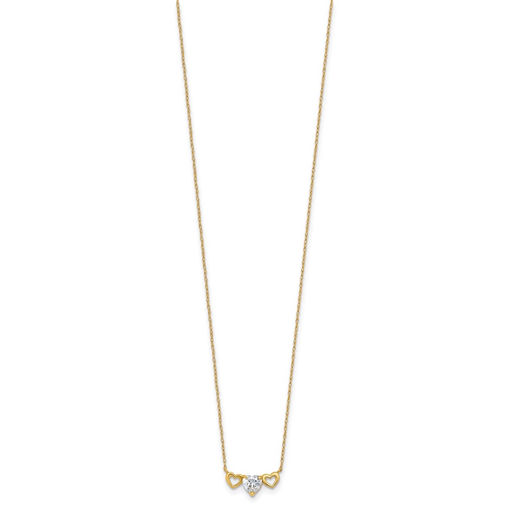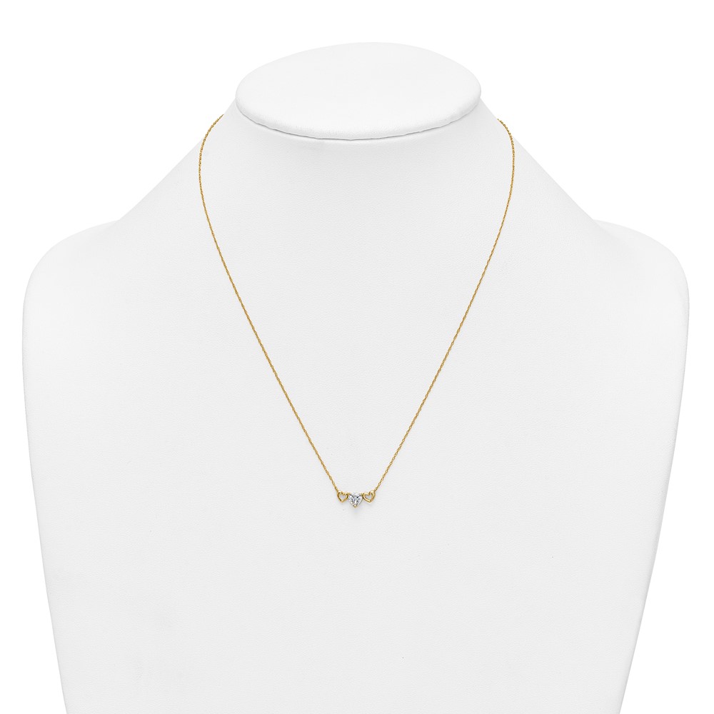 10k Polished Heart CZ Center with Two Open Hearts 18.5 inch Necklace