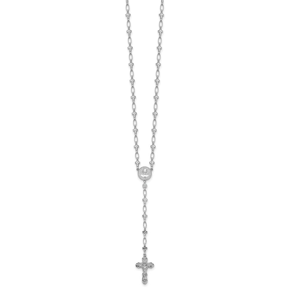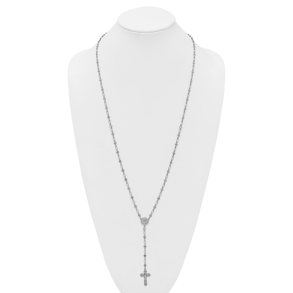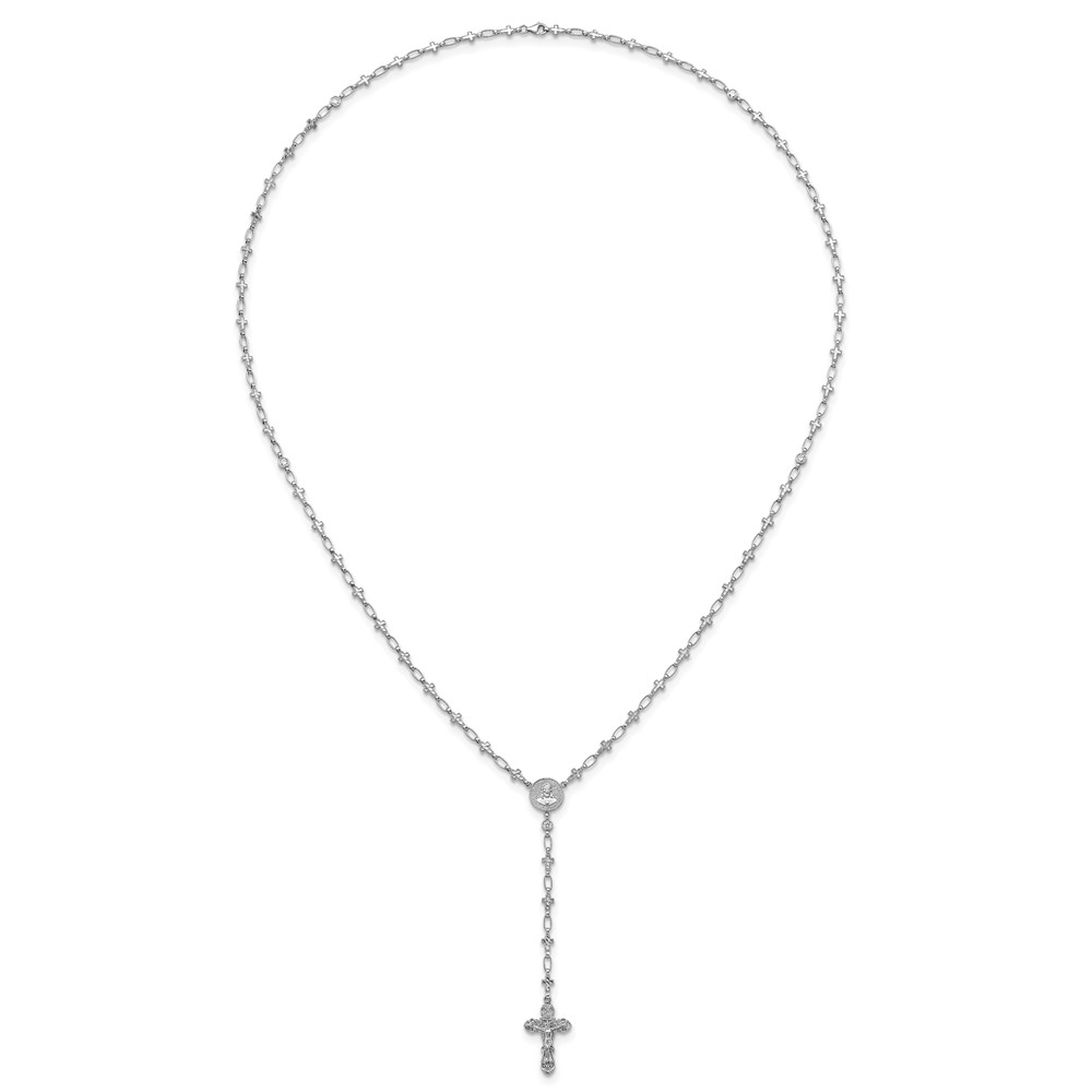 Sterling Silver Rhodium-plated Polished CZ and Diamond-cut Crosses 30.5 inch Rosary Necklace