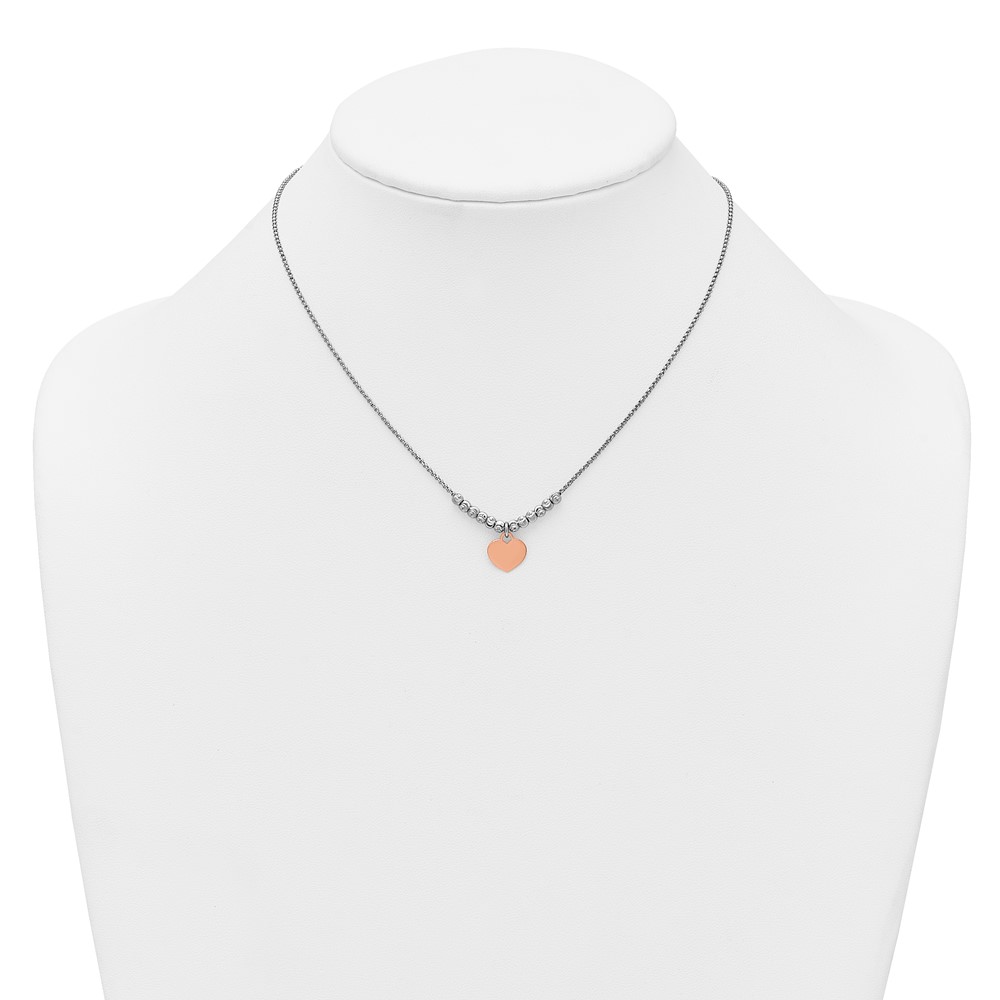 Sterling Silver Rhodium-plated Rose Gold-plated Heart Disc and Textured Beads 16 inch with 1 inch extension Necklace
