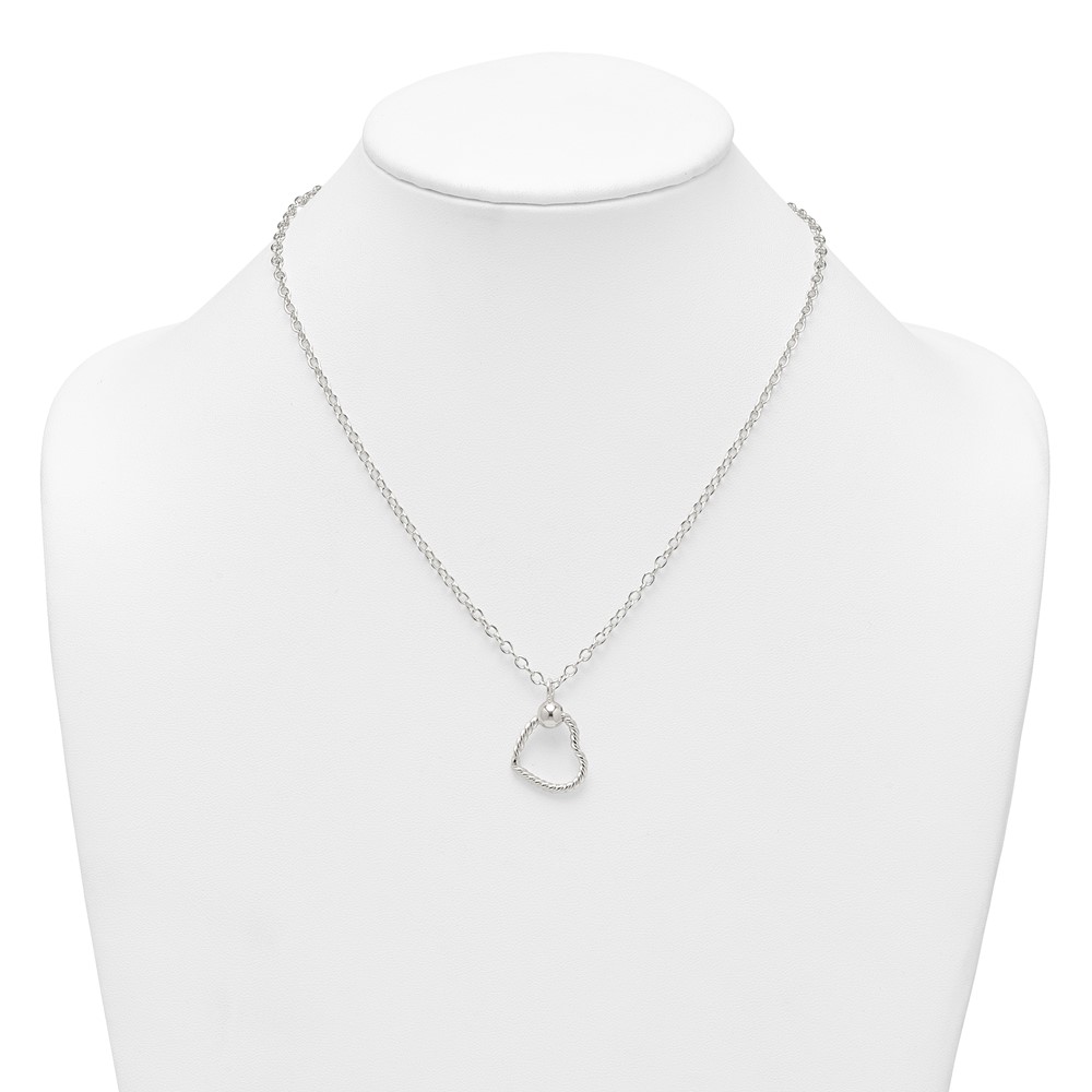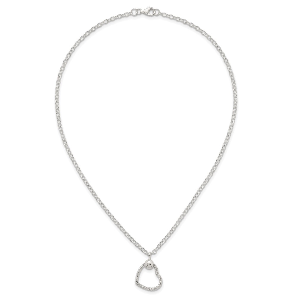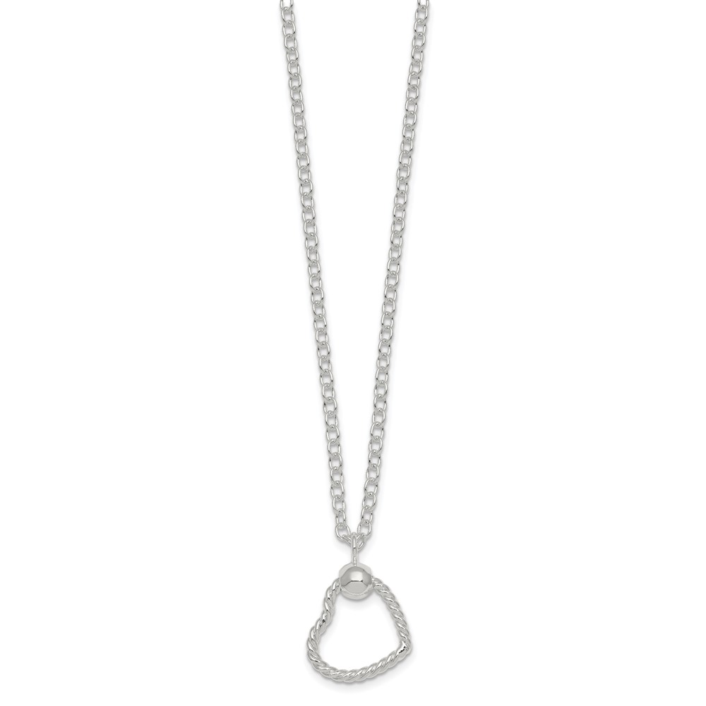 Sterling Silver Polished and Twisted Heart 18 Inch Cable Chain Necklace