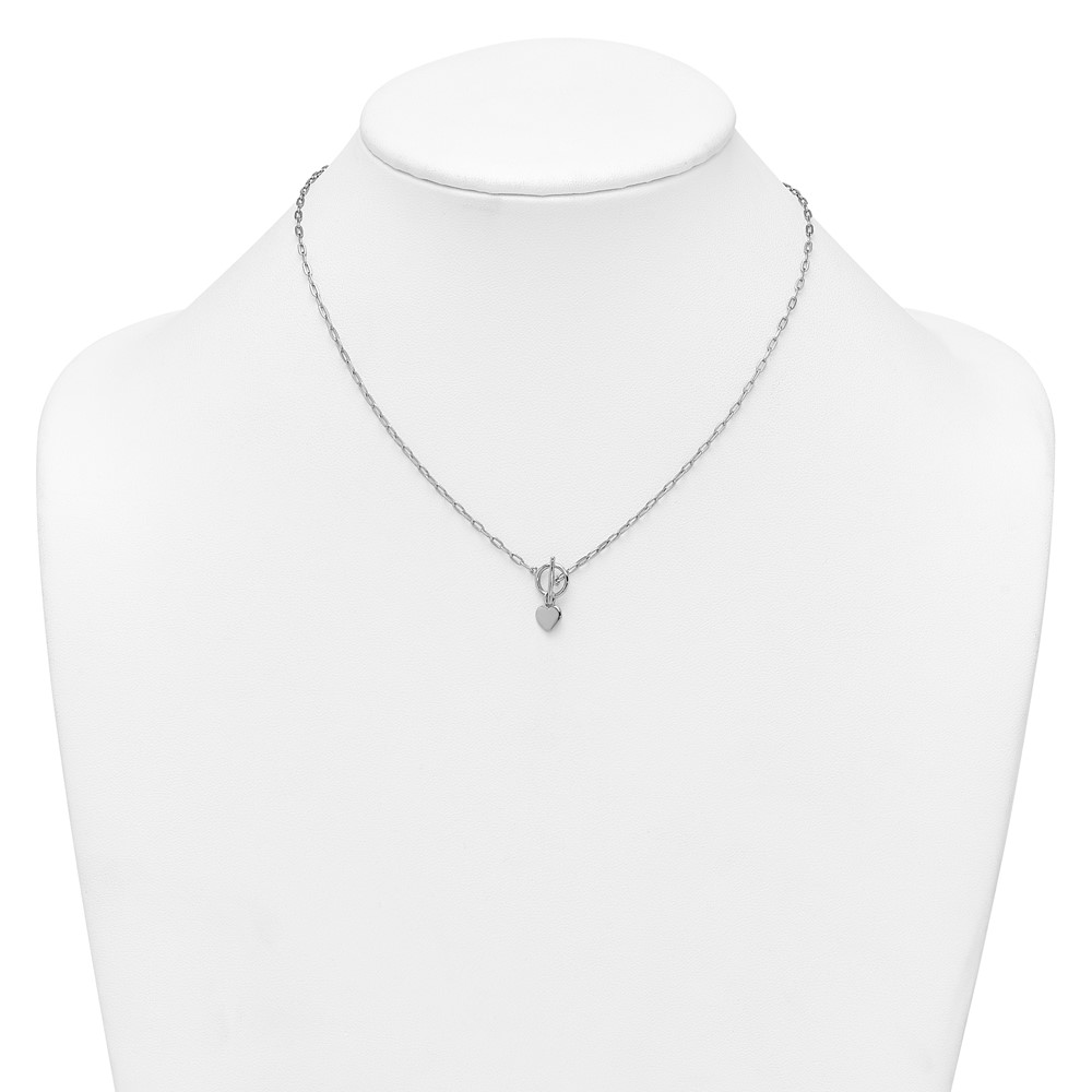 Sterling Silver Rhodium-plated Polished Heart Dangle Paperclip Link 16 Inch with 2 Inch Extension Necklace