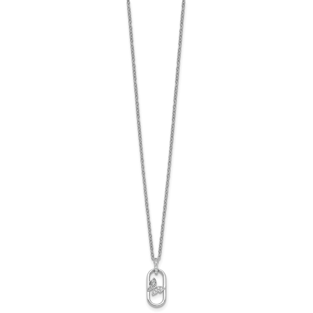 Sterling Silver Rhodium-plated CZ Oval with Butterfly 16 inch with 1.5 inch Extension Necklace