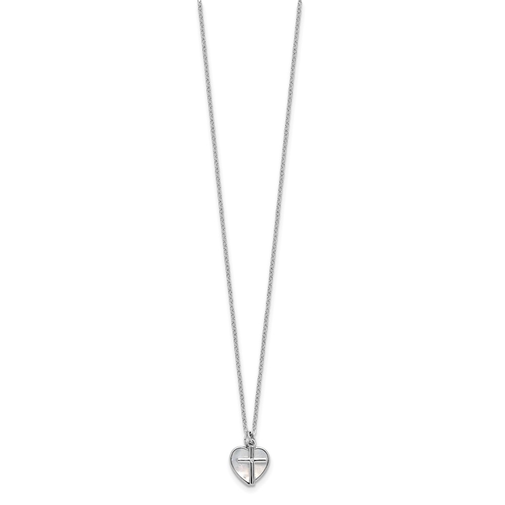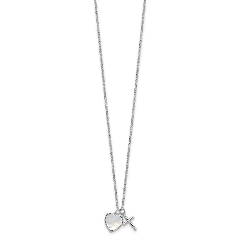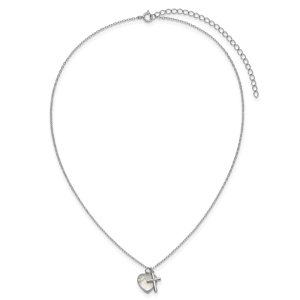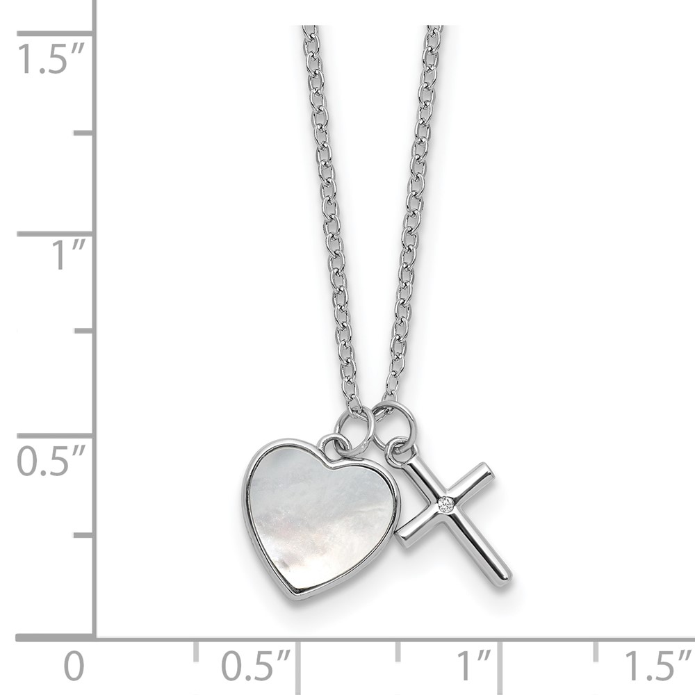 Sterling Silver Cross w/CZ and Mother of Pearl Heart Necklace