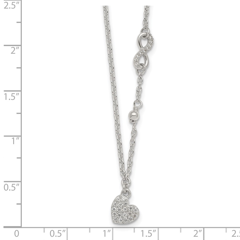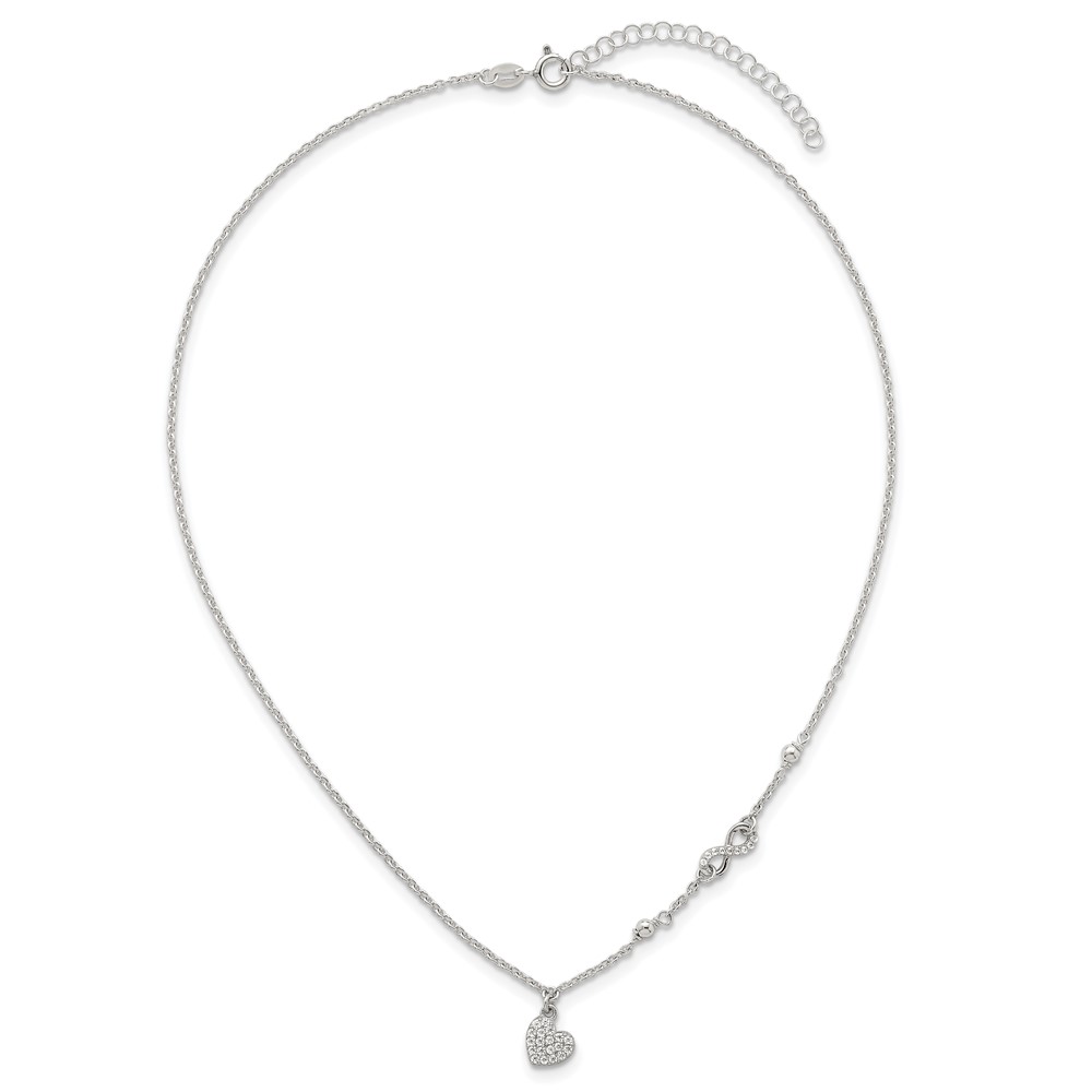 Sterling Silver Polished Beaded White CZ Infinity and Heart 16 inch with 2 inch Extension Necklace