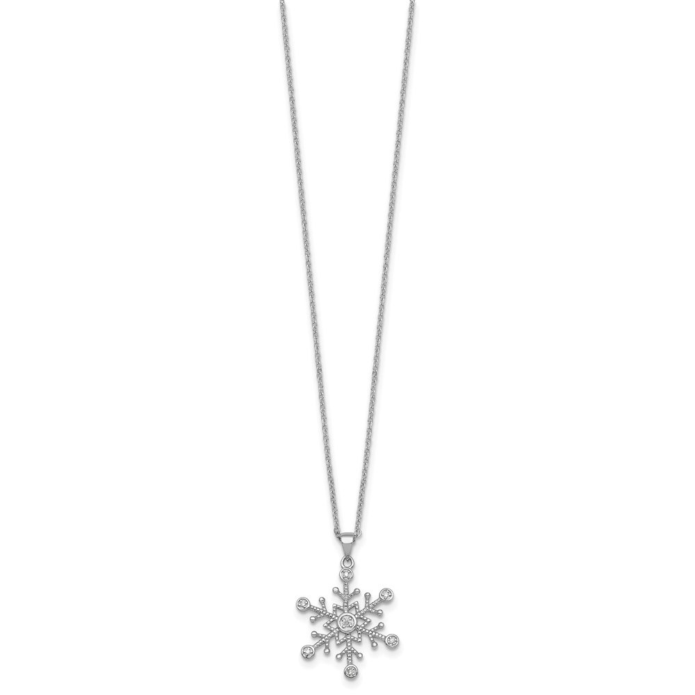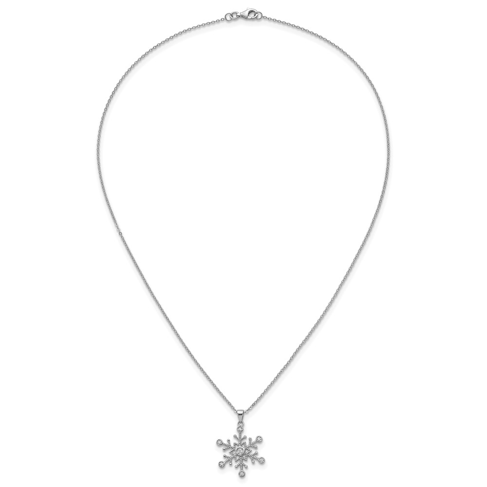 Sterling Silver Rhodium-plated CZ Polished And Textured Snowflake 18 inch Necklace