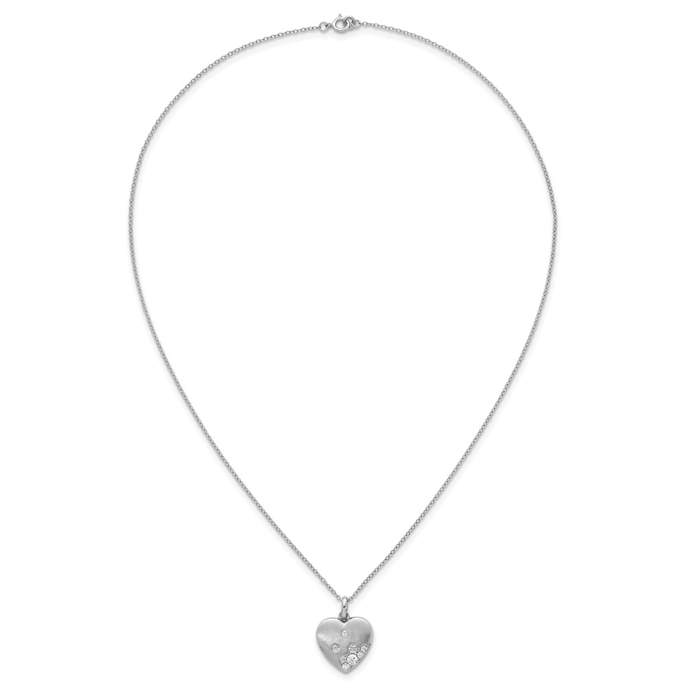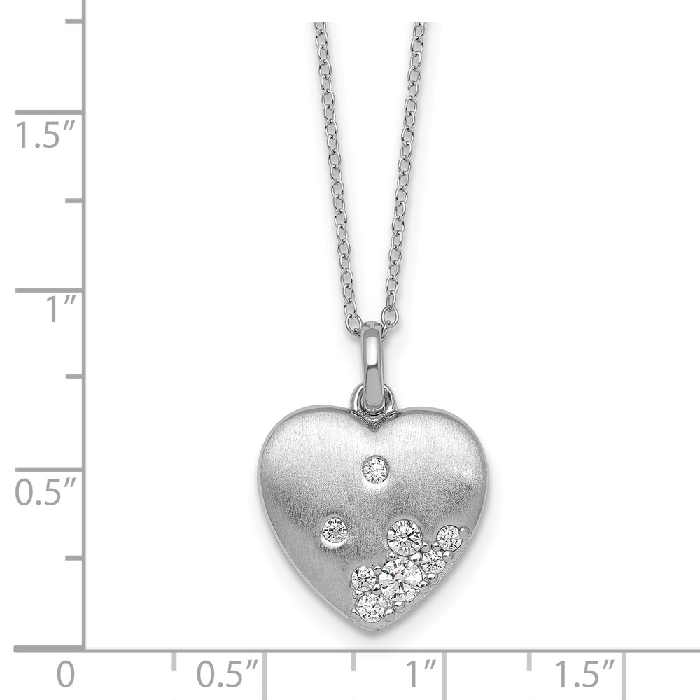 Sterling Silver Rhodium-plated Brushed CZ Heart 17.5 inch Necklace