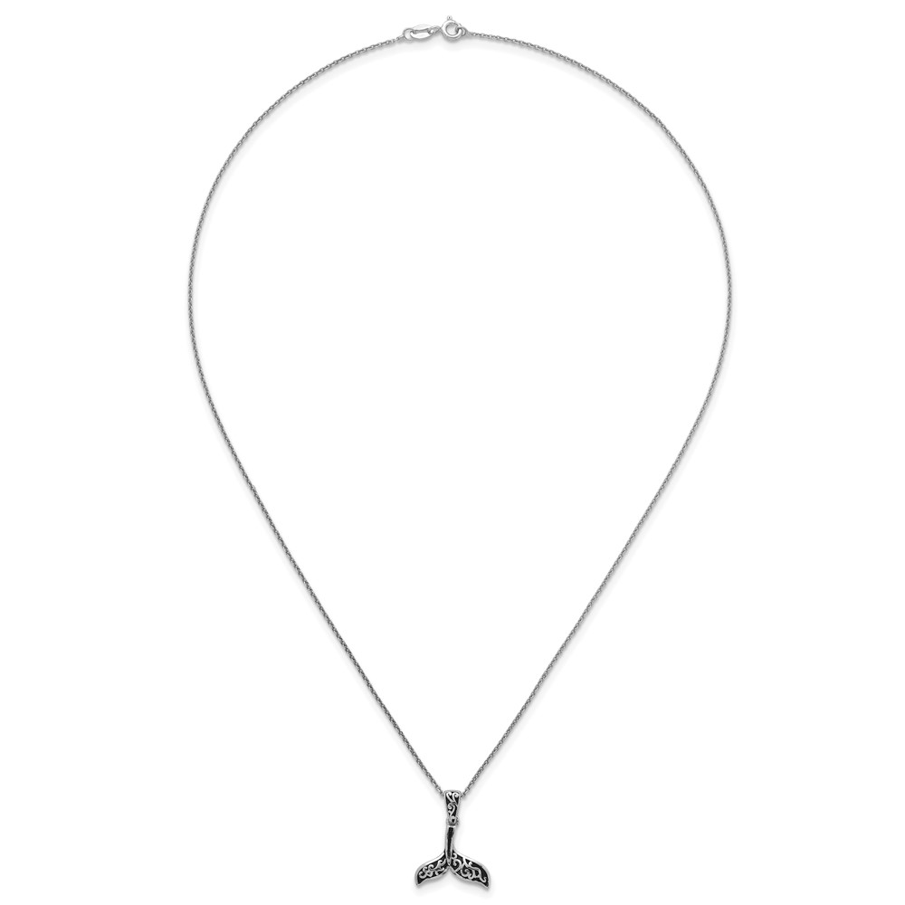 Sterling Silver Rhodium-plated Polished and Oxidized Filigree Whale Tail 18 Inch Necklace