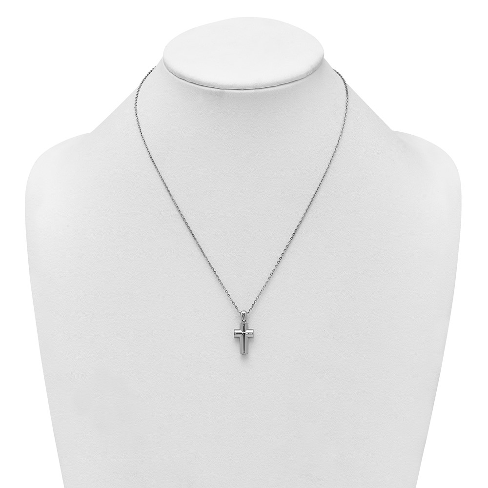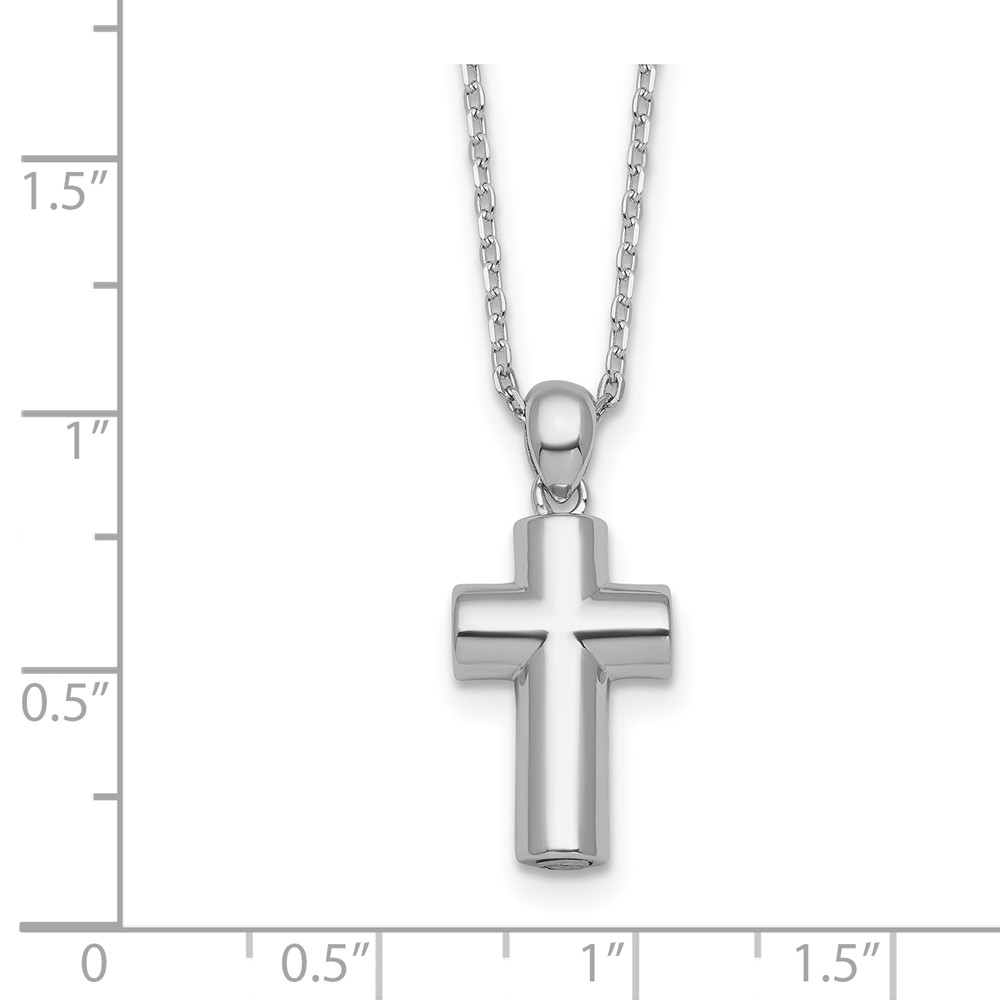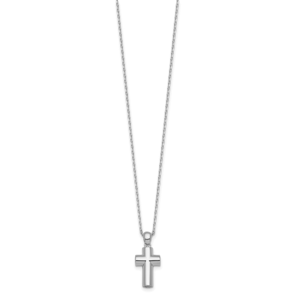 Sterling Silver Rhodium-plated Polished 18 inch Cross Ash Holder Necklace