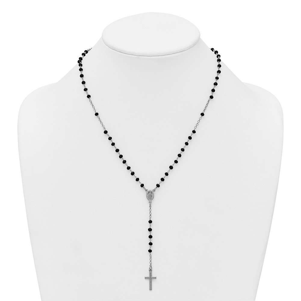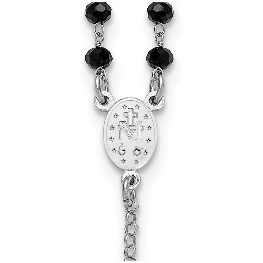 Sterling Silver Rhodium-plated Black Crystal 18.5 inch with 1 inch extender Rosary Necklace