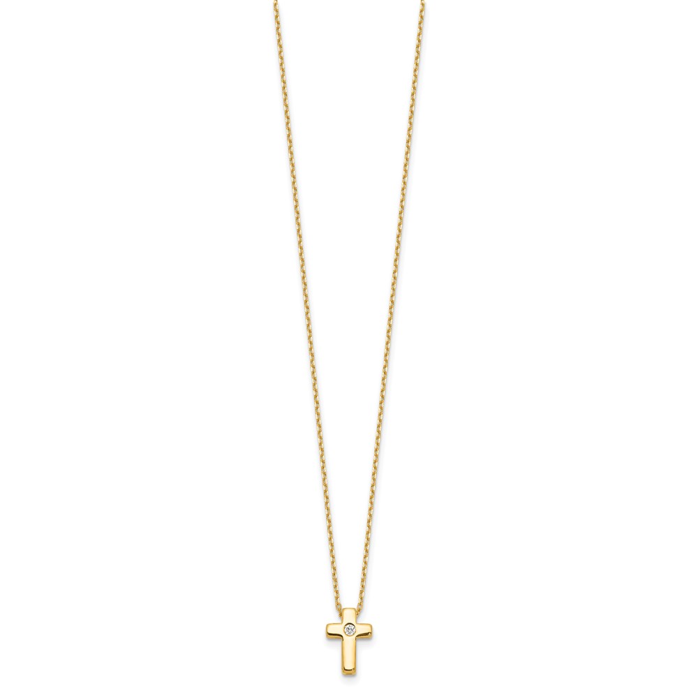 Sterling Silver Gold-tone CZ Cross 16in w/2in ext. Necklace