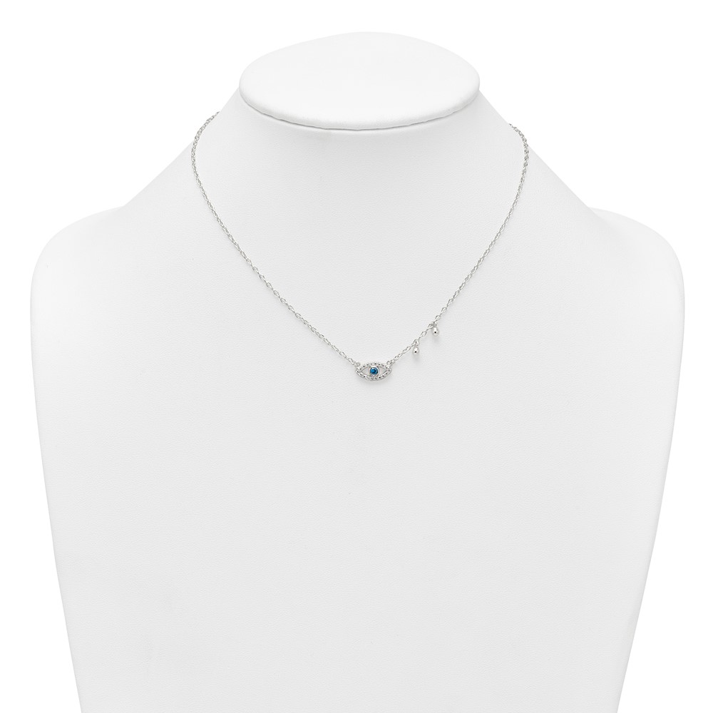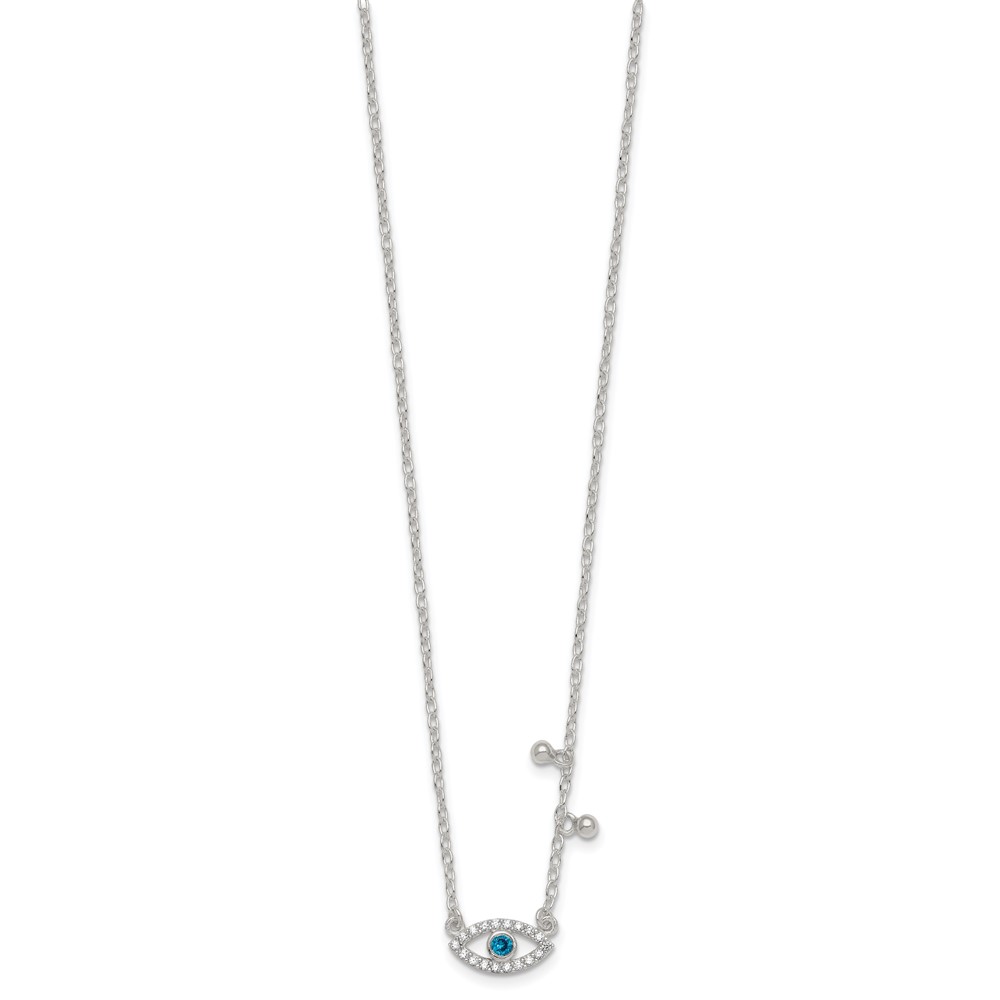 Sterling Silver Polished Blue and White CZ Eye with Beads 16 inch with 2 inch Extension Necklace