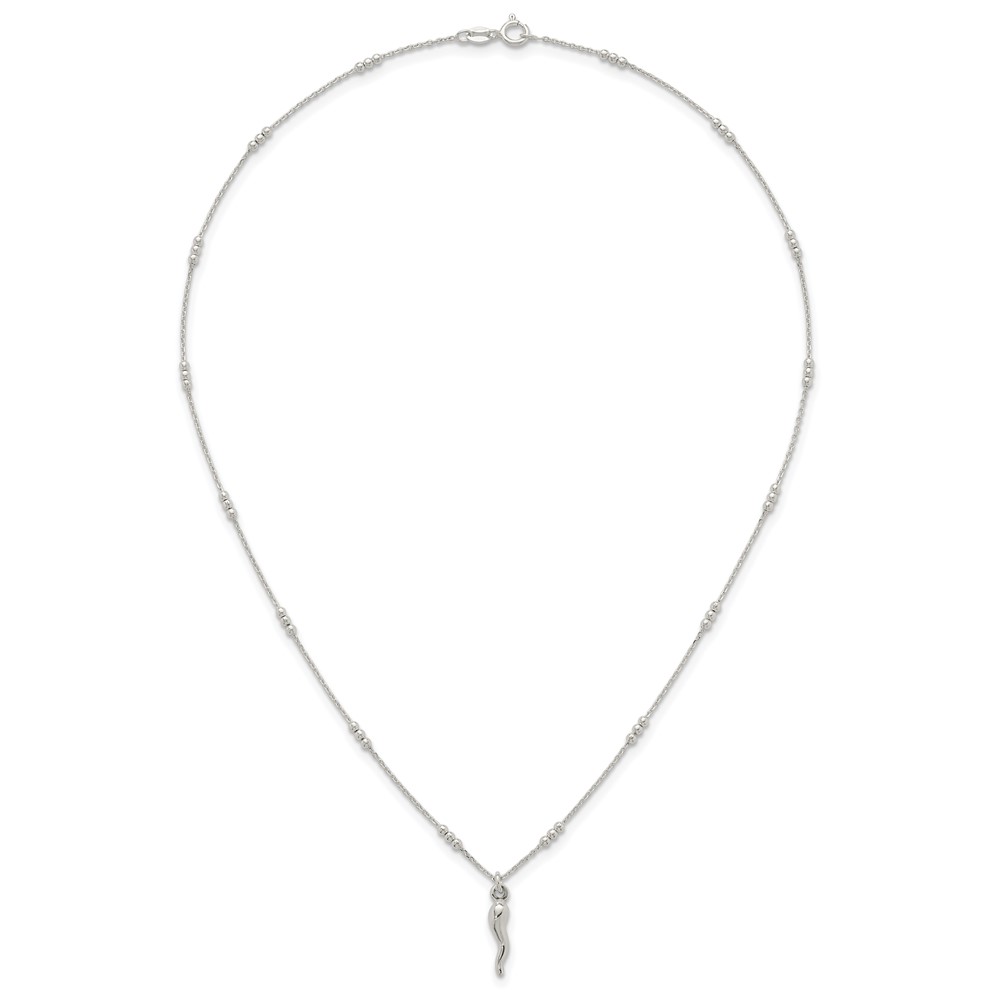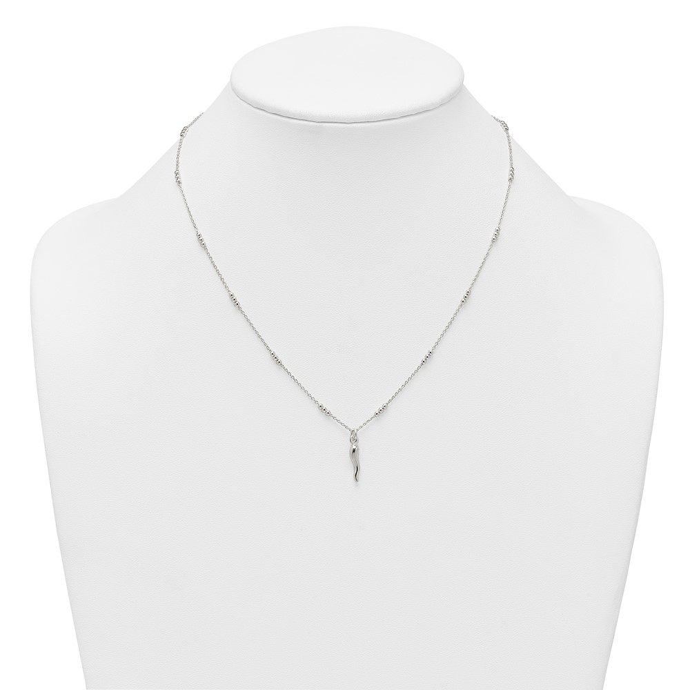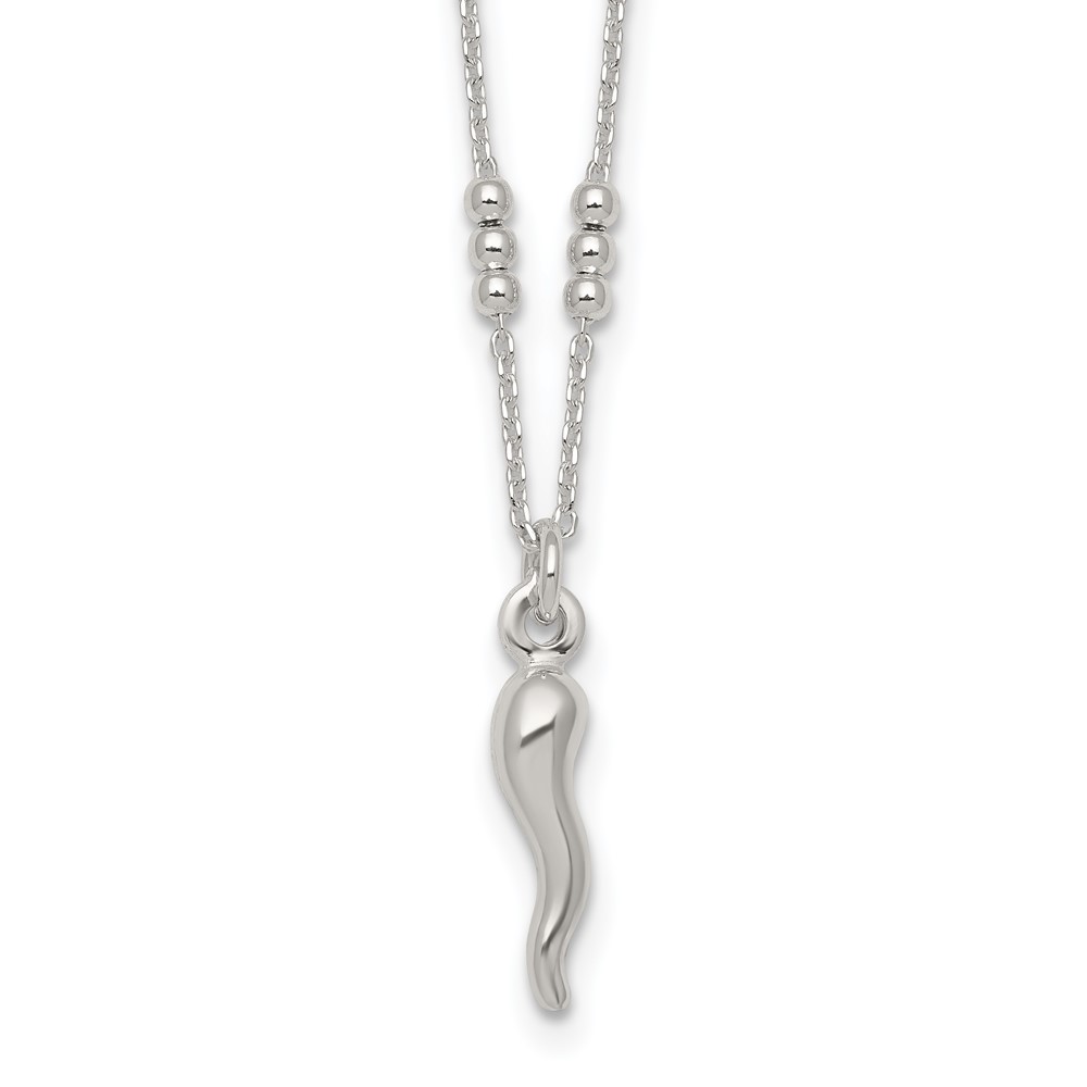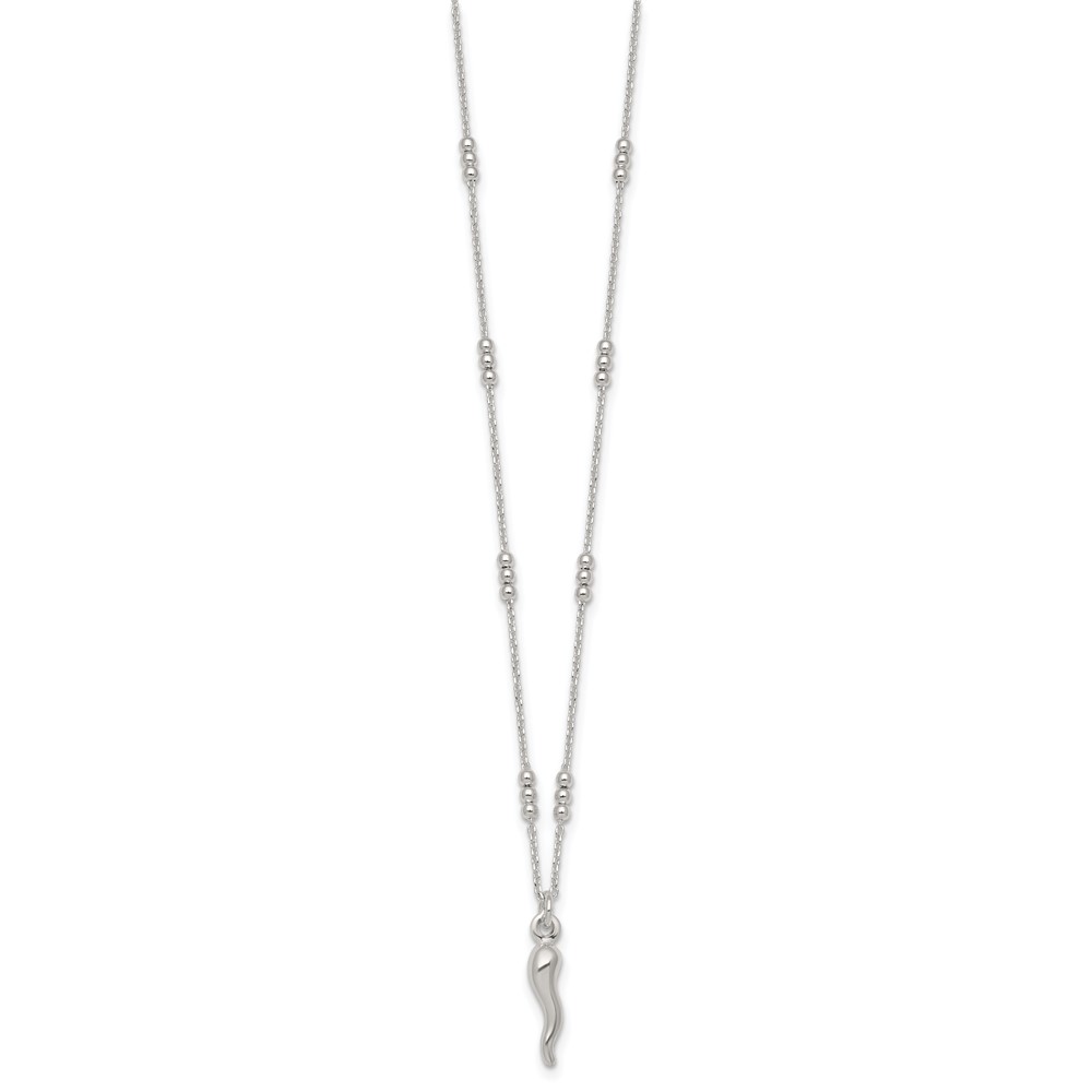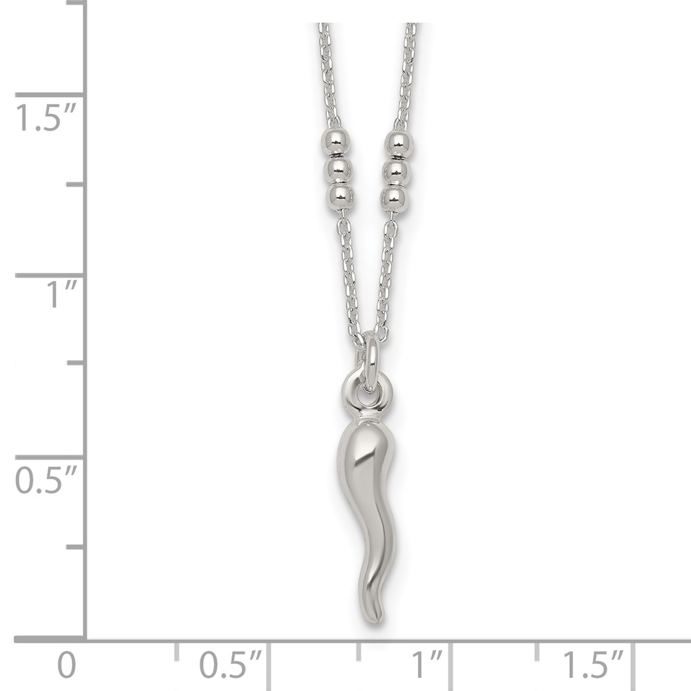 Sterling Silver Polished and Beaded Italian Horn 18 Inch Necklace