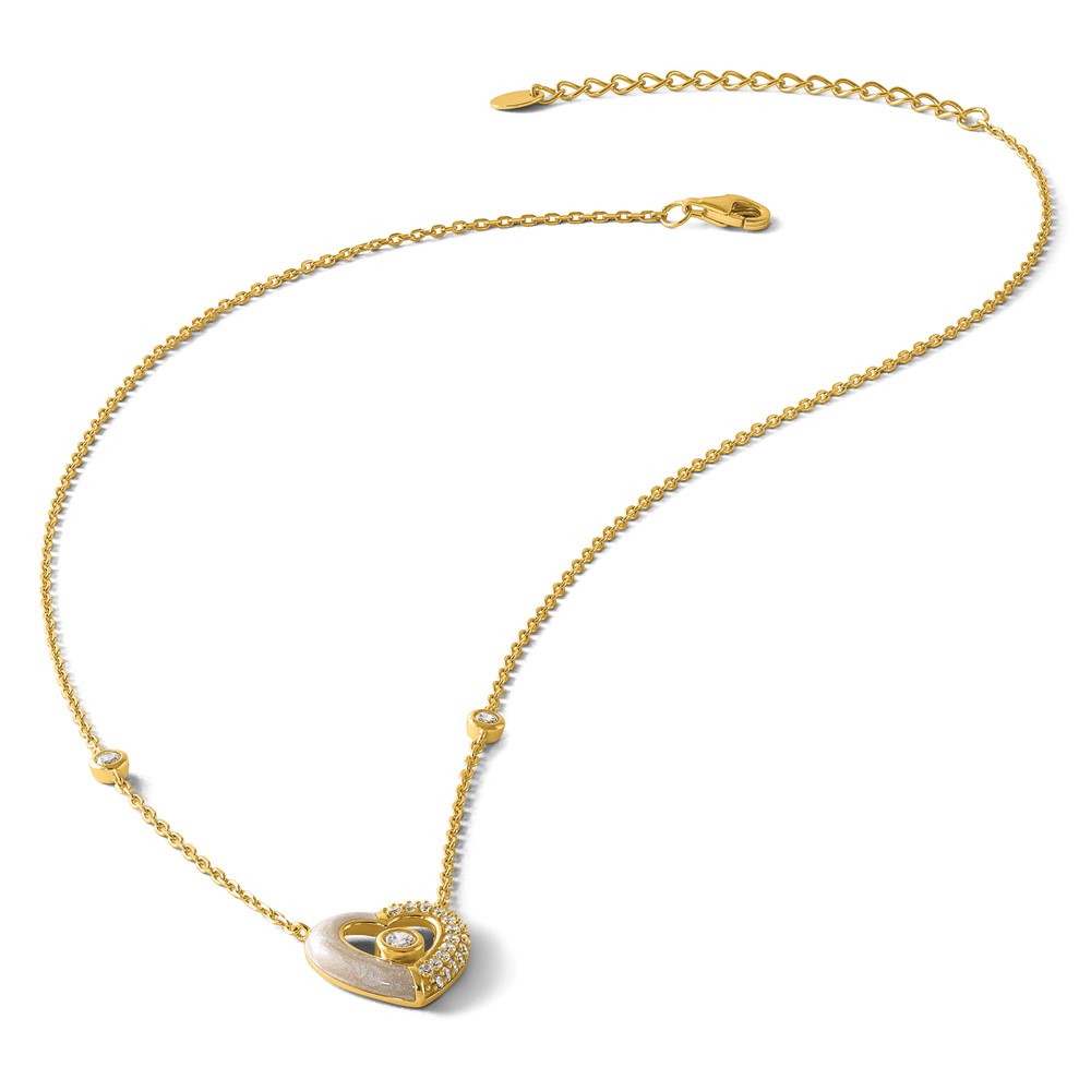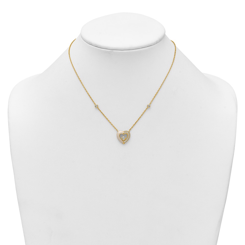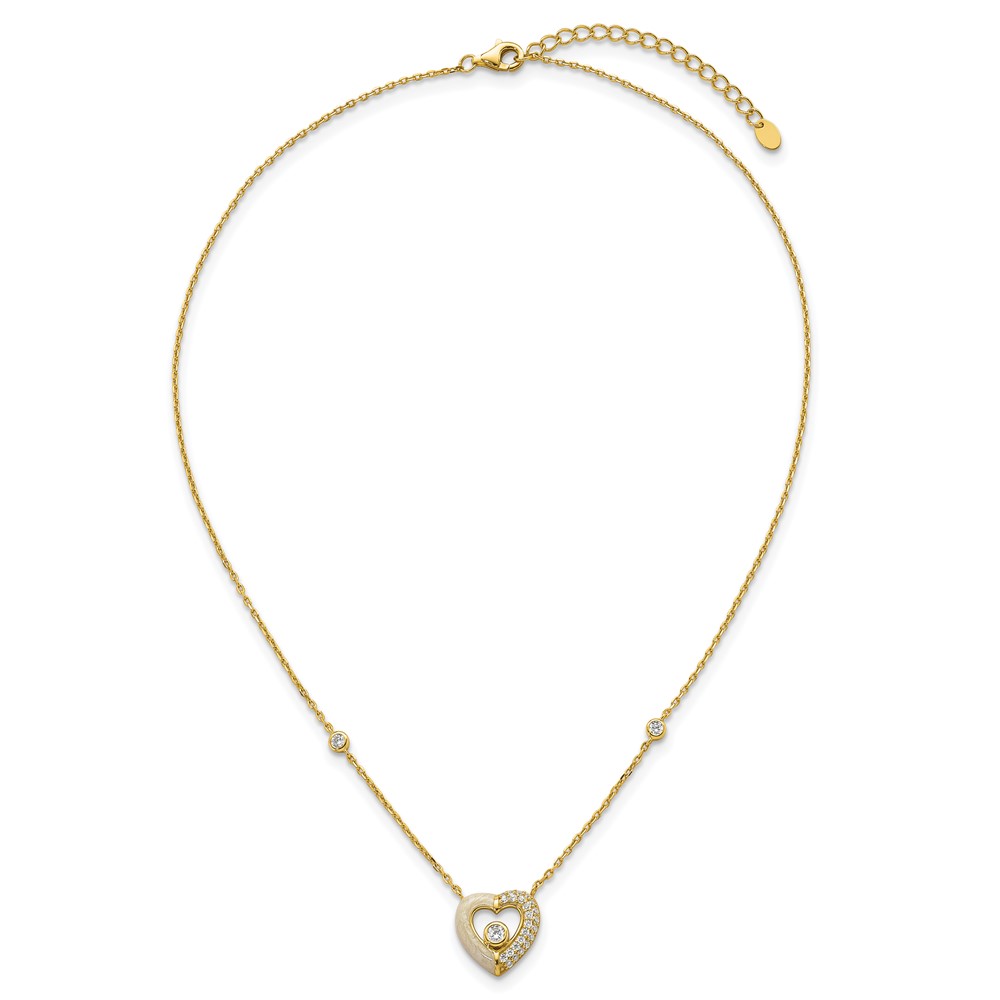 Sterling Silver Gold-tone Polished CZ and Champagne Enamel Open Heart 16 inch with 2 inch Extension Necklace