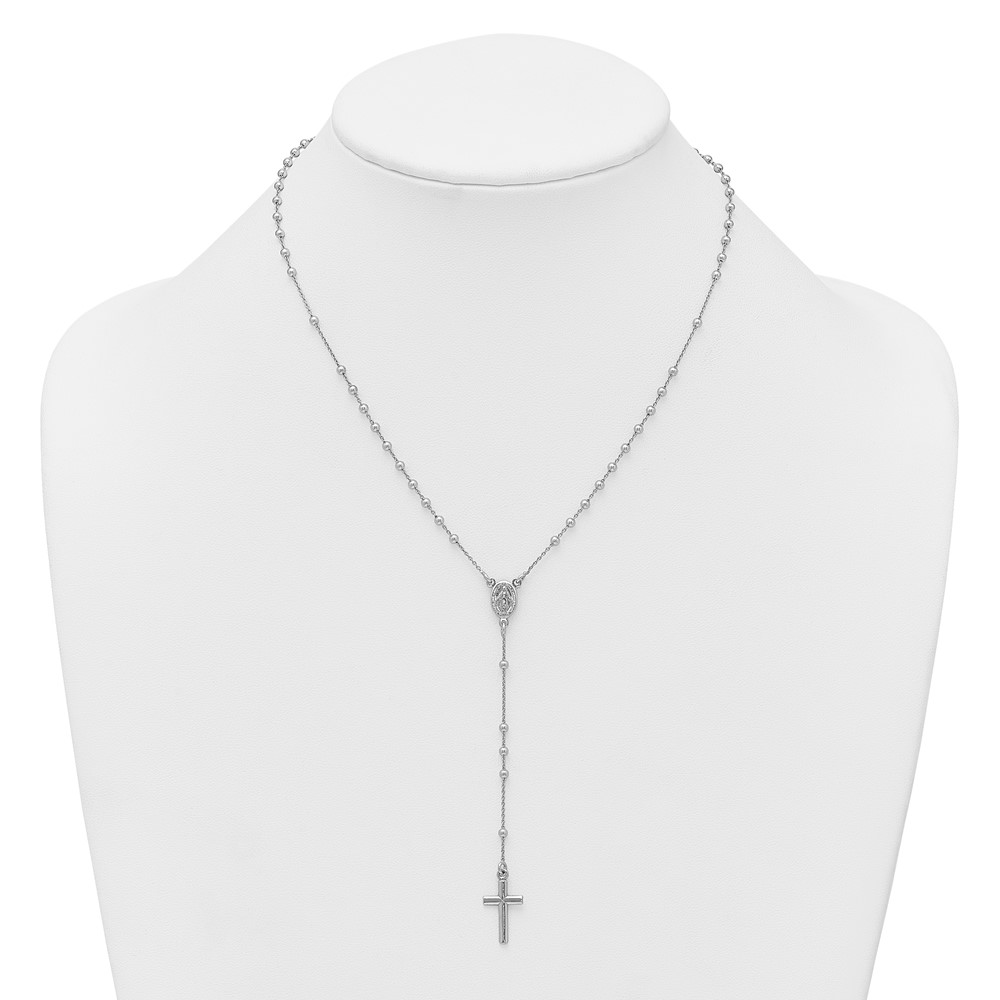 Sterling Silver Rhodium-plated Polished 17.5 inch with 1.25 inch extender Rosary Necklace