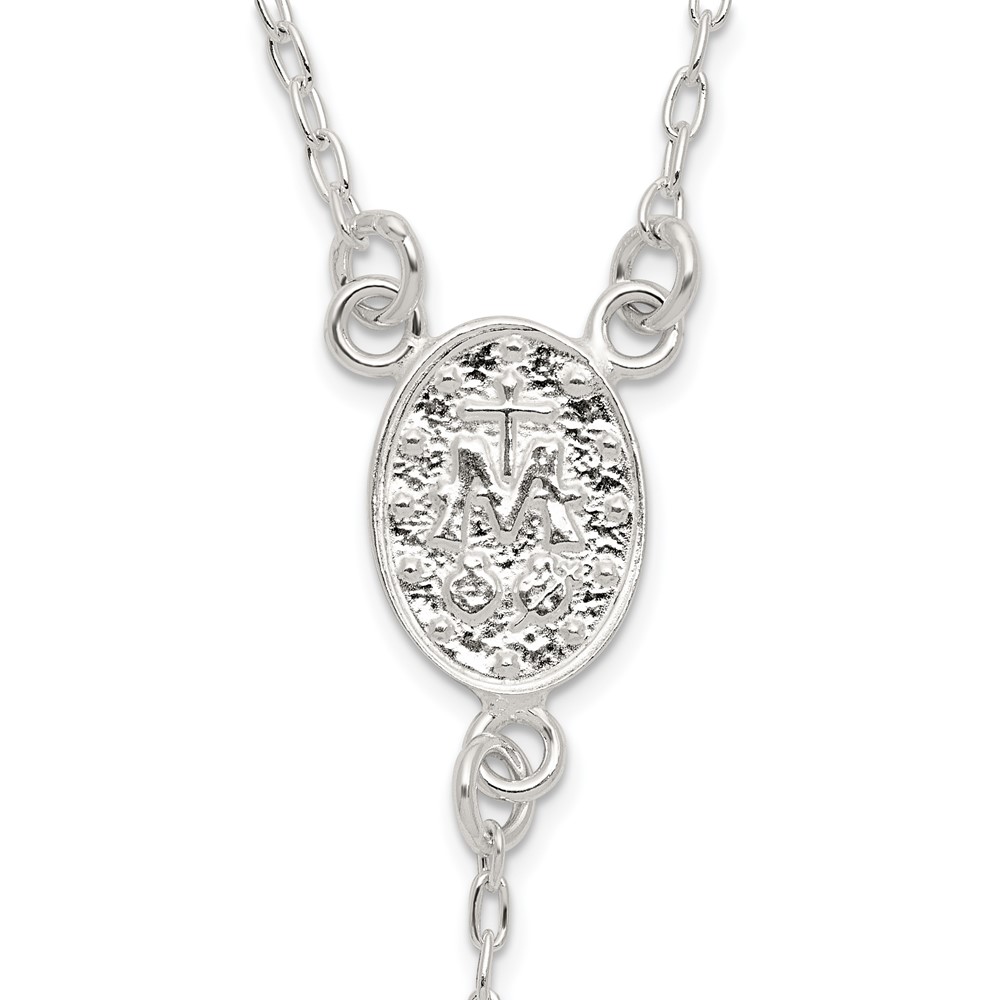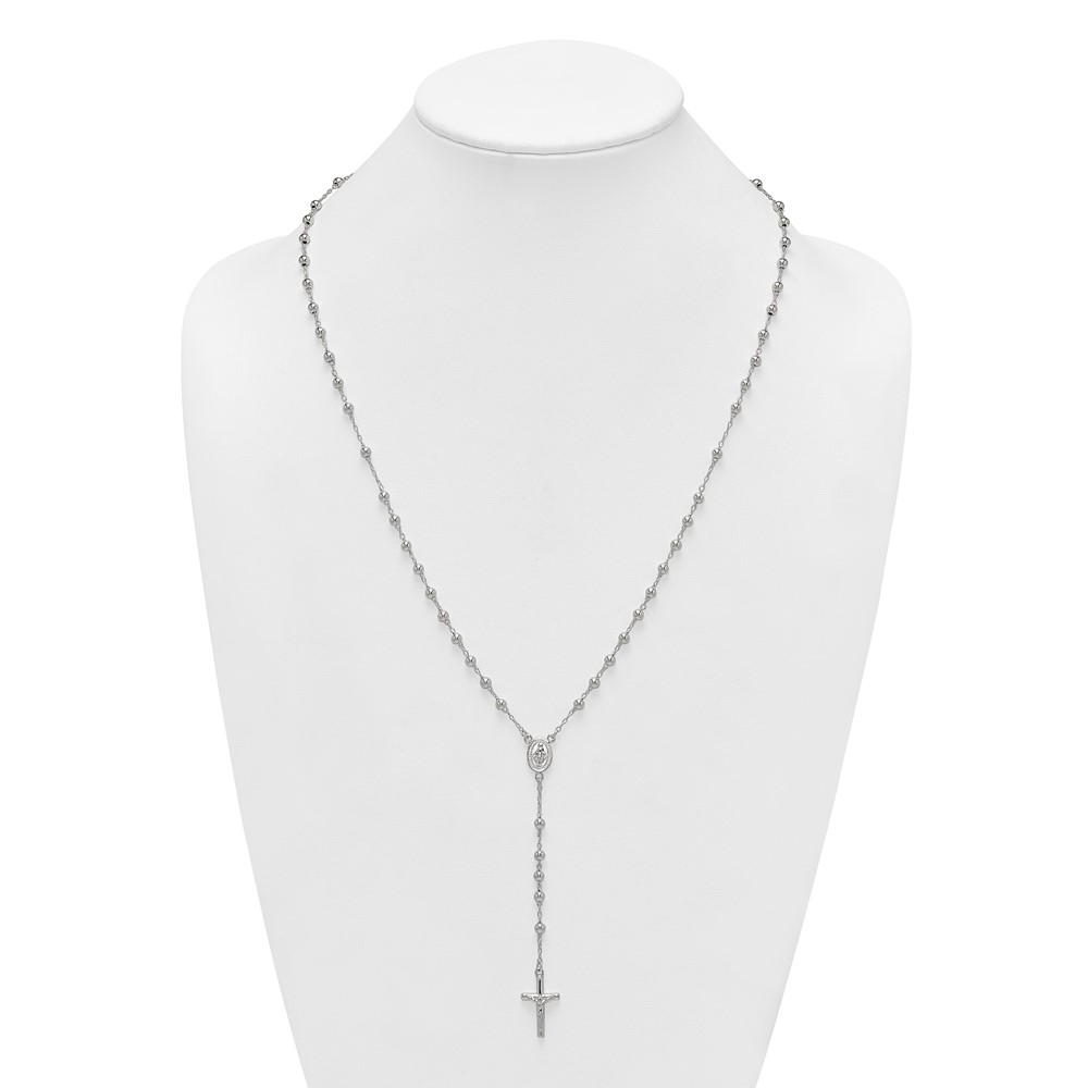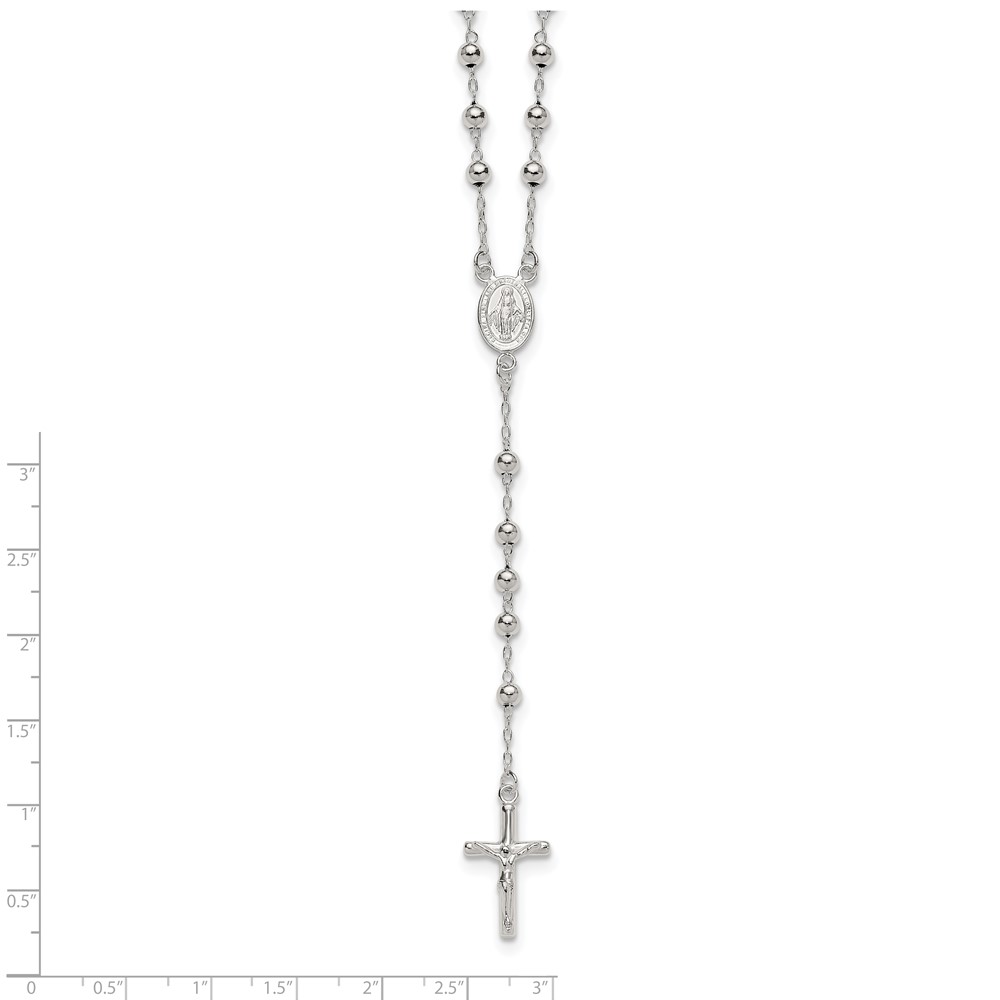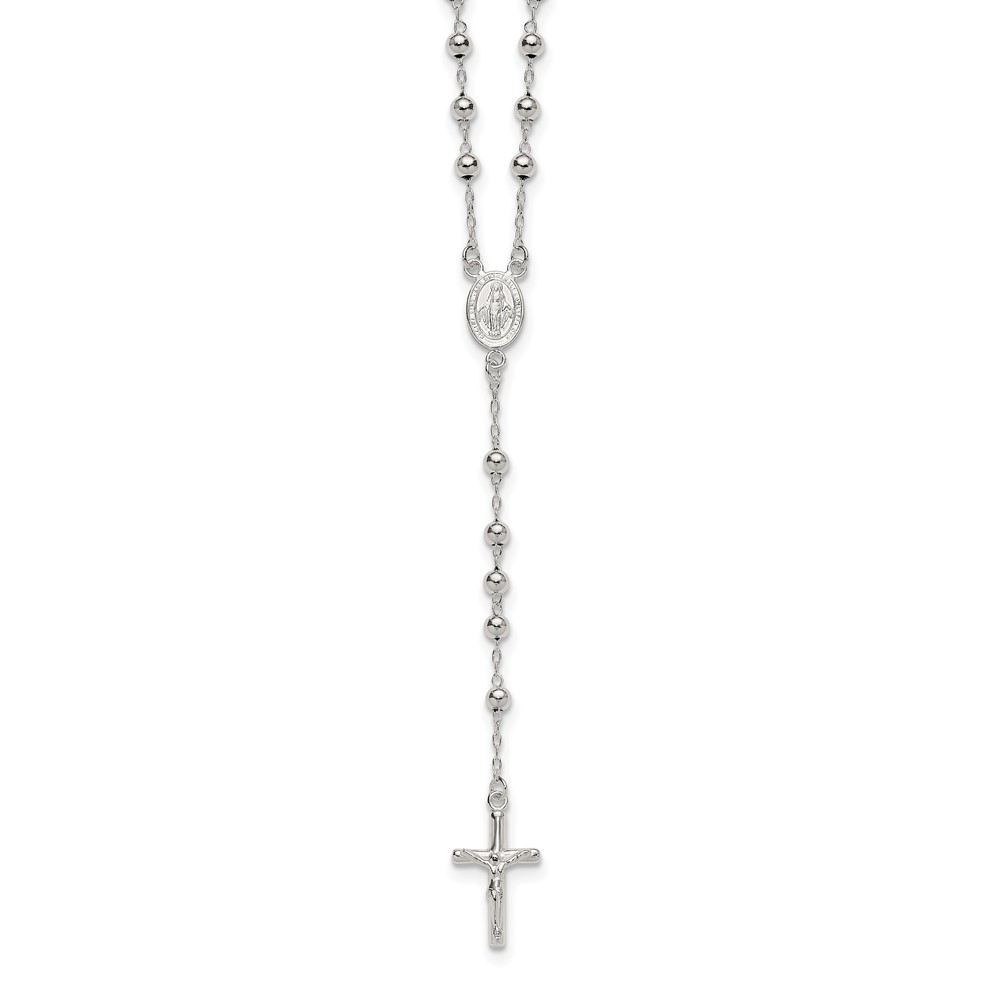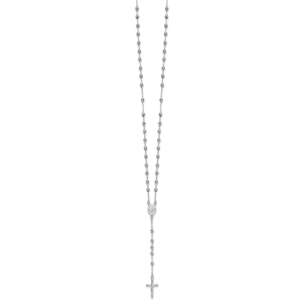 Sterling Silver Polished and Beaded Rosary 24 inch Necklace