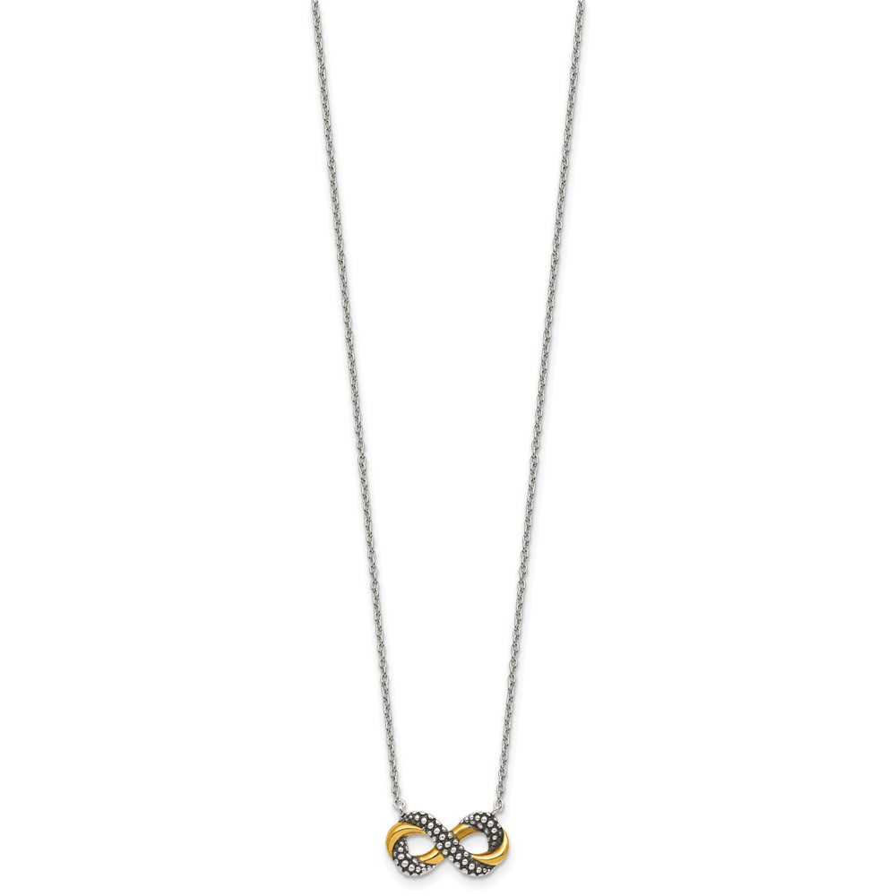 Sterling Silver with Gold-tone Polished and Antiqued Beaded Infinity Charm 16 inch Necklace