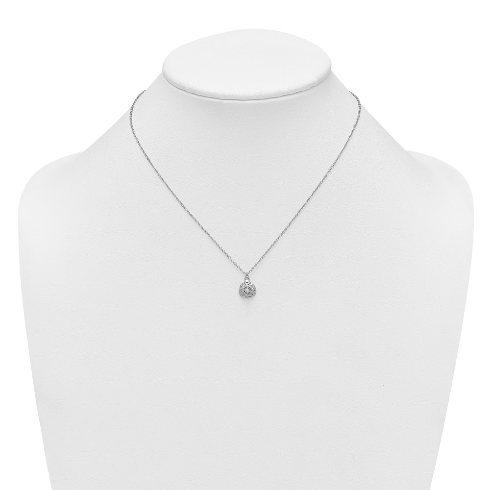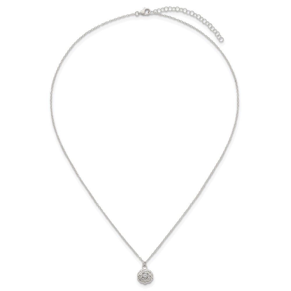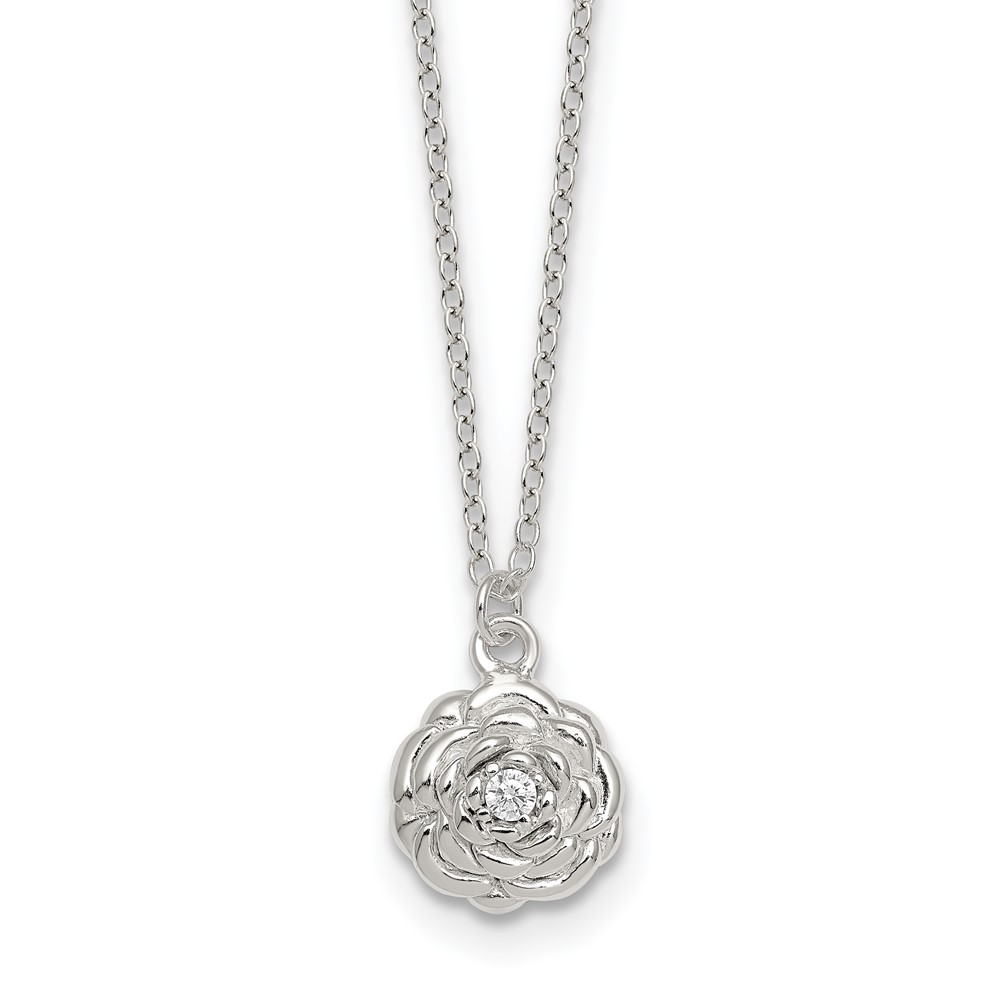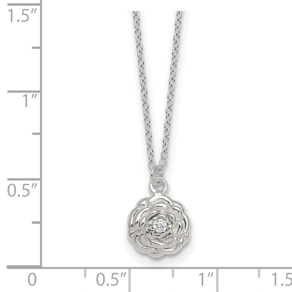 Sterling Silver Polished CZ Flower 16 Inch with 2 Inch Extension Necklace