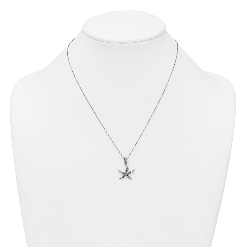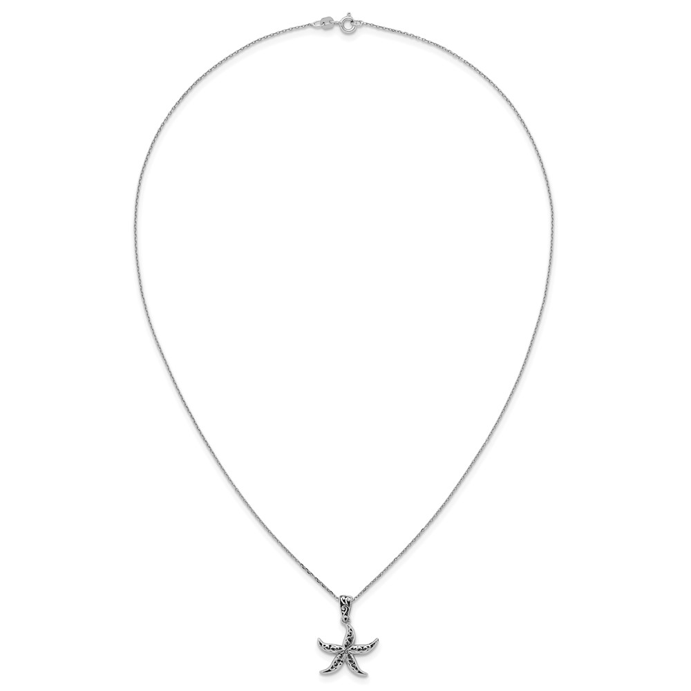 Sterling Silver Rhodium-plated Polished and Oxidized Filigree Starfish 18 Inch Necklace