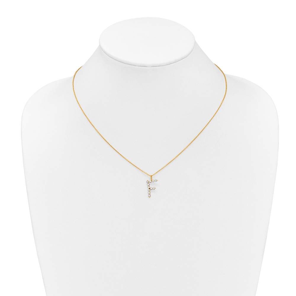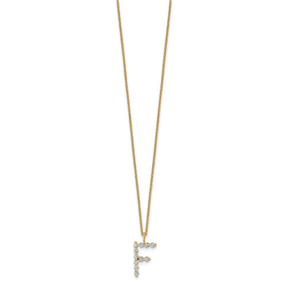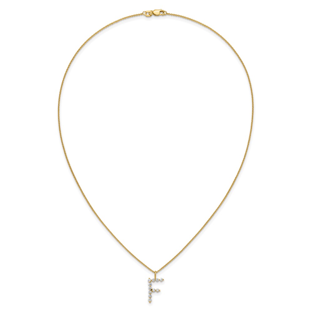 True Origin 14K Yellow Gold 3/8 carat Lab Grown Diamond VS+ F+ Complete Alphabet F Pendant Necklace