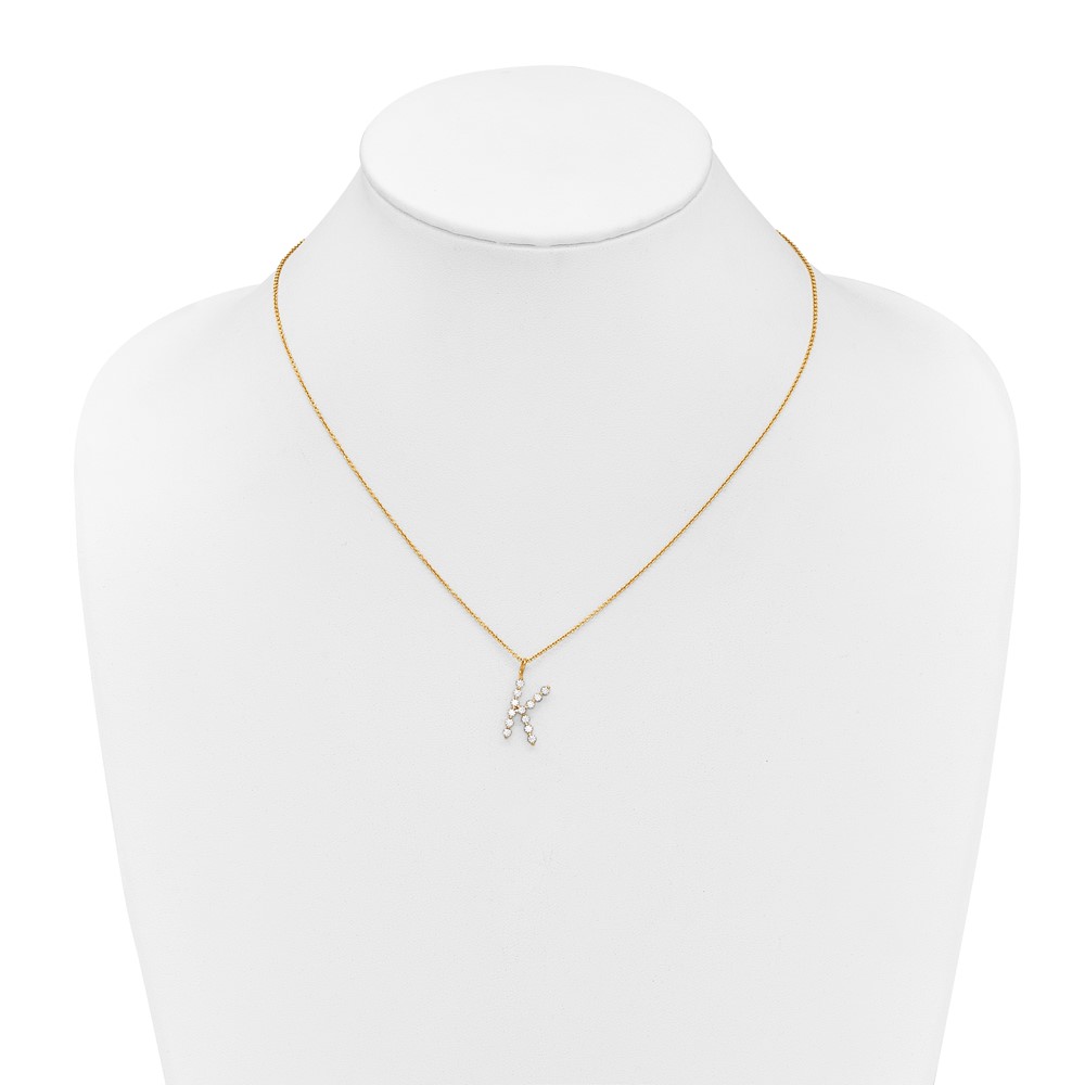 True Origin 14K Yellow Gold 3/8 carat Lab Grown Diamond VS+ F+ Complete Alphabet K Pendant Necklace