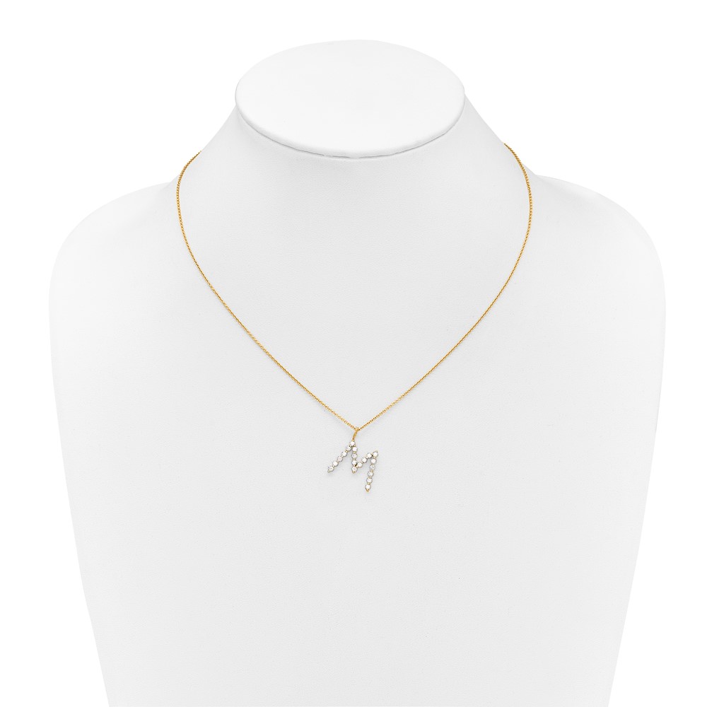 True Origin 14K Yellow Gold 5/8 carat Lab Grown Diamond VS+ F+ Complete Alphabet M Pendant Necklace