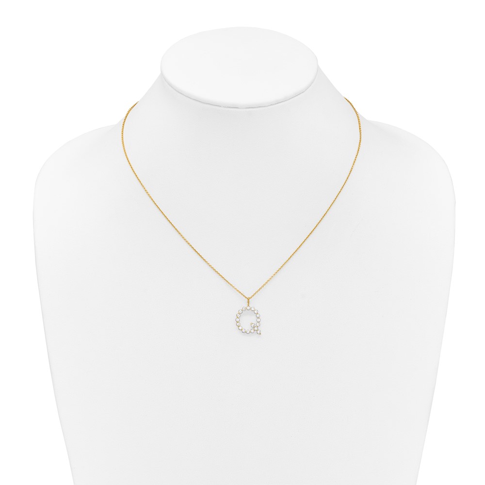 True Origin 14K Yellow Gold 5/8 carat Lab Grown Diamond VS+ F+ Complete Alphabet Q Pendant Necklace