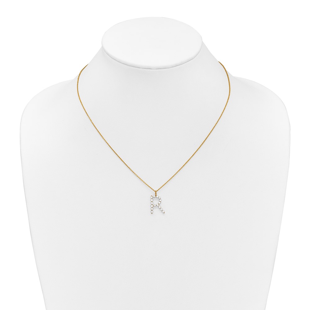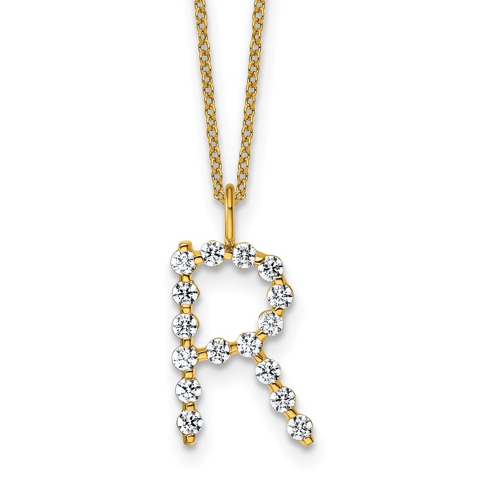 True Origin 14K Yellow Gold 1/2 carat Lab Grown Diamond VS+ F+ Complete Alphabet R Pendant Necklace