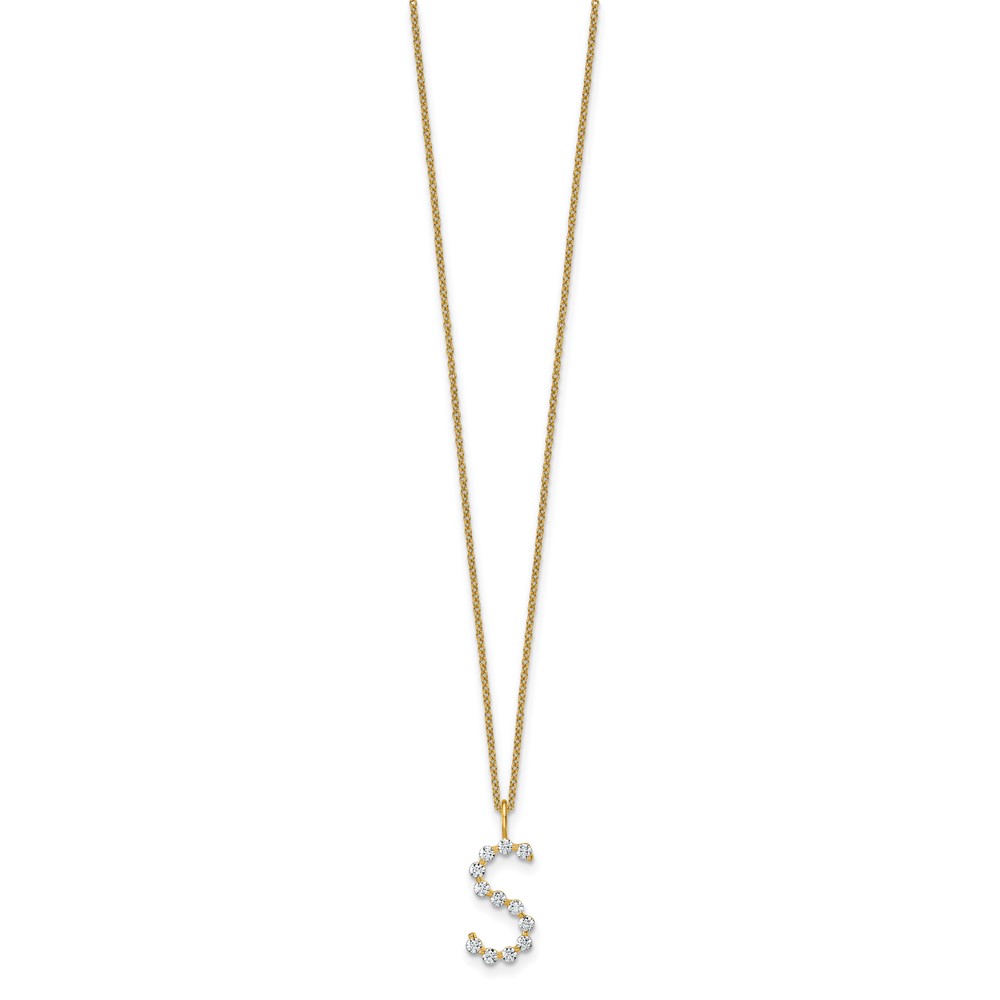 True Origin 14K Yellow Gold 1/2 carat Lab Grown Diamond VS+ F+ Complete Alphabet S Pendant Necklace