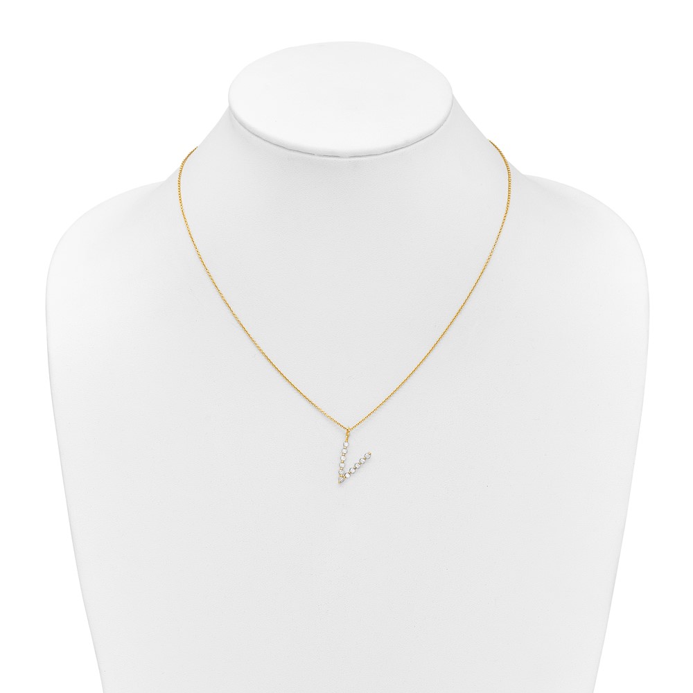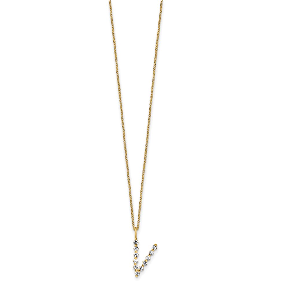True Origin 14K Yellow Gold 3/8 carat Lab Grown Diamond VS+ F+ Complete Alphabet V Pendant Necklace