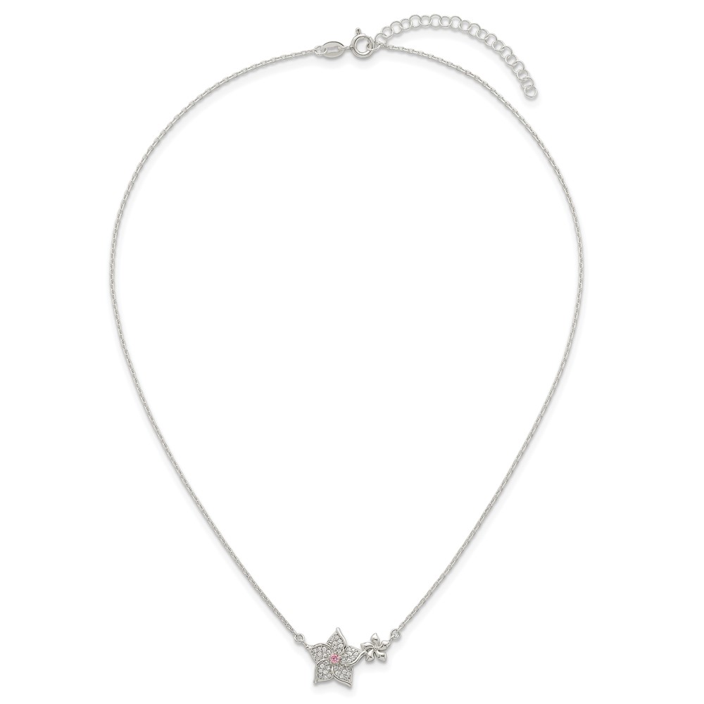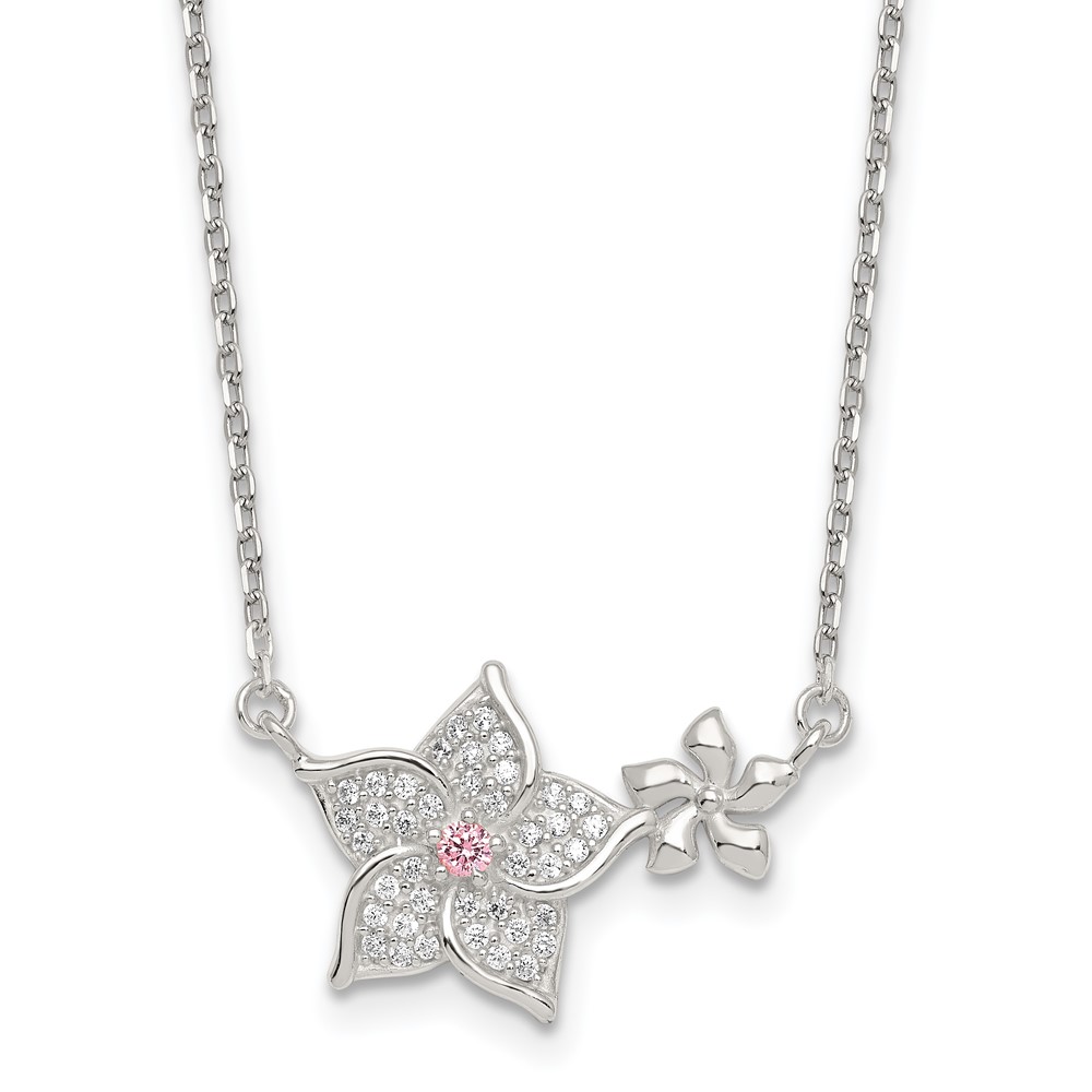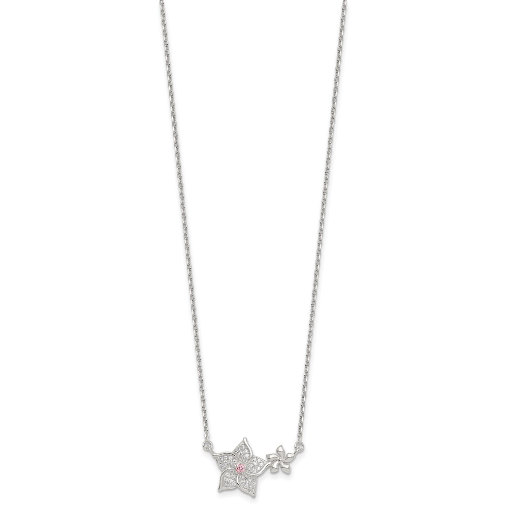 Sterling Silver Polished Pink and White CZ Flowers 16 inch with 2 inch Extension Necklace