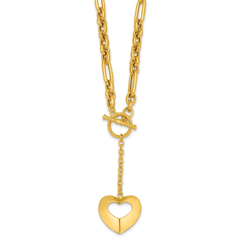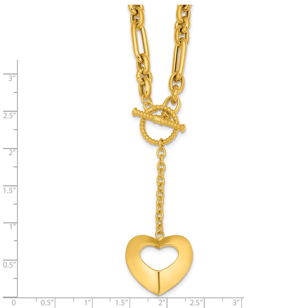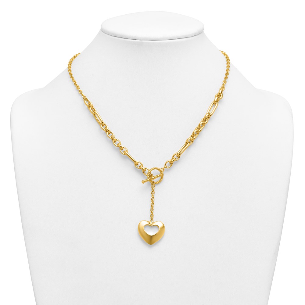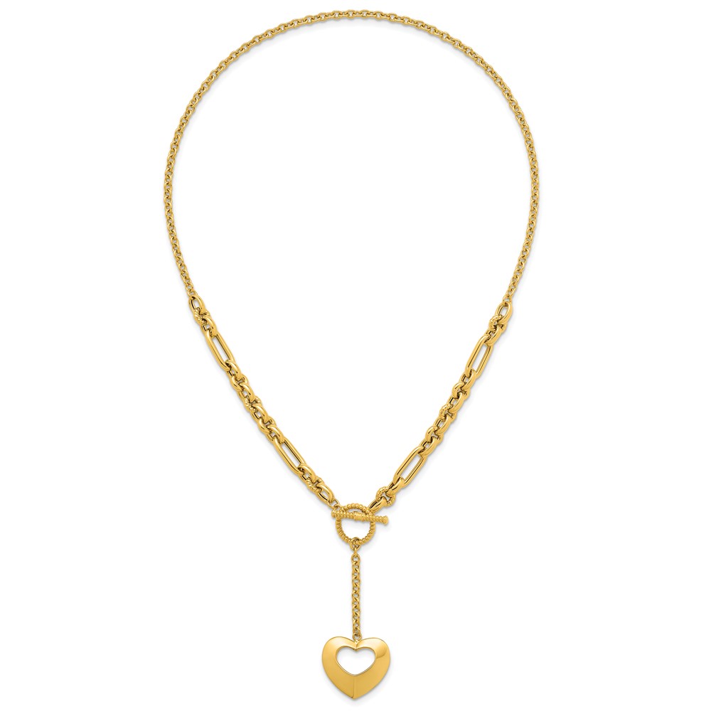 Herco 14K Polished and Beaded Mixed Link Heart Drop Toggle 18.25 Inch Necklace
