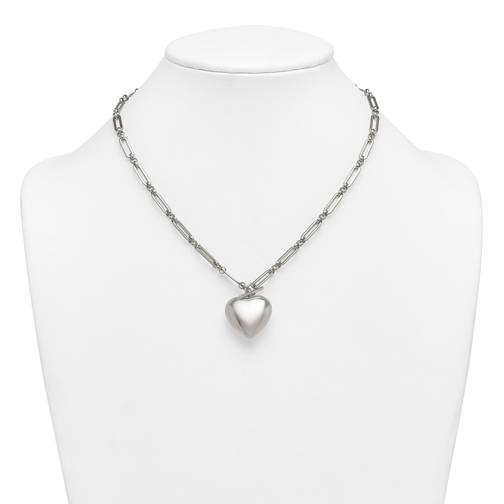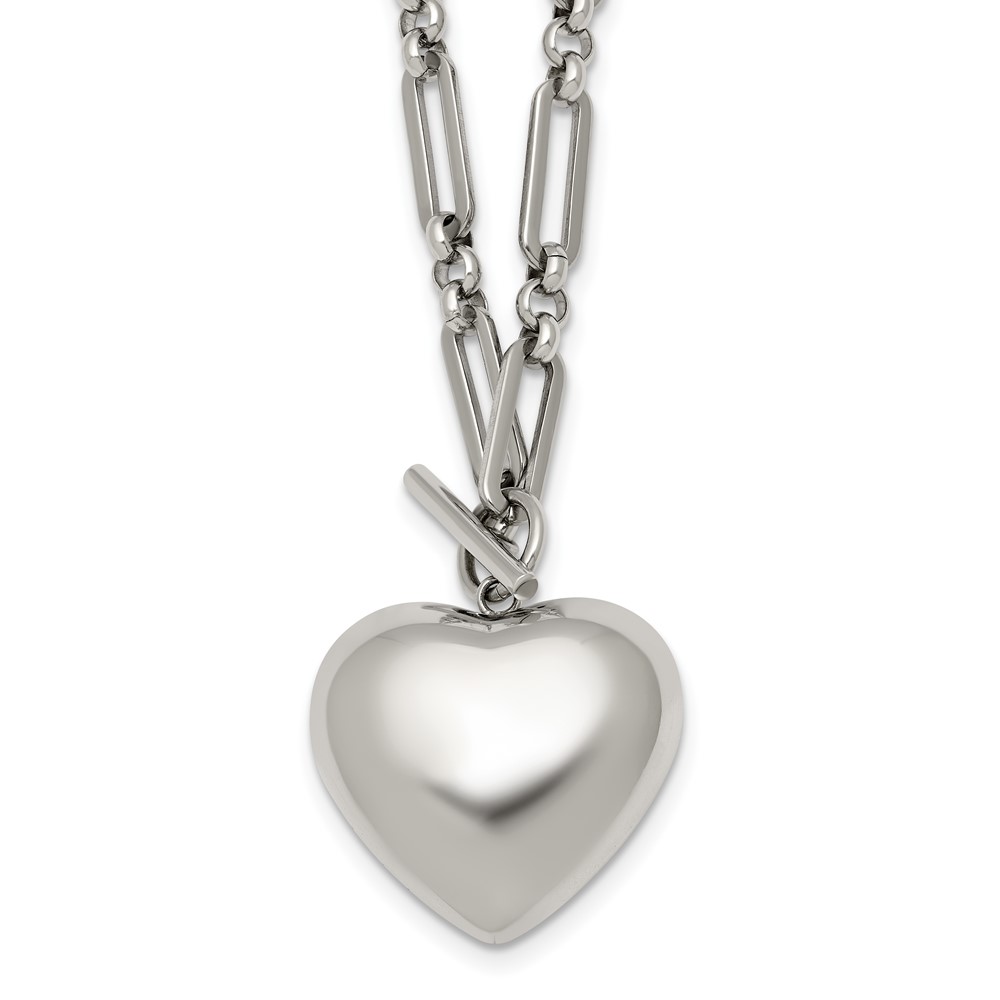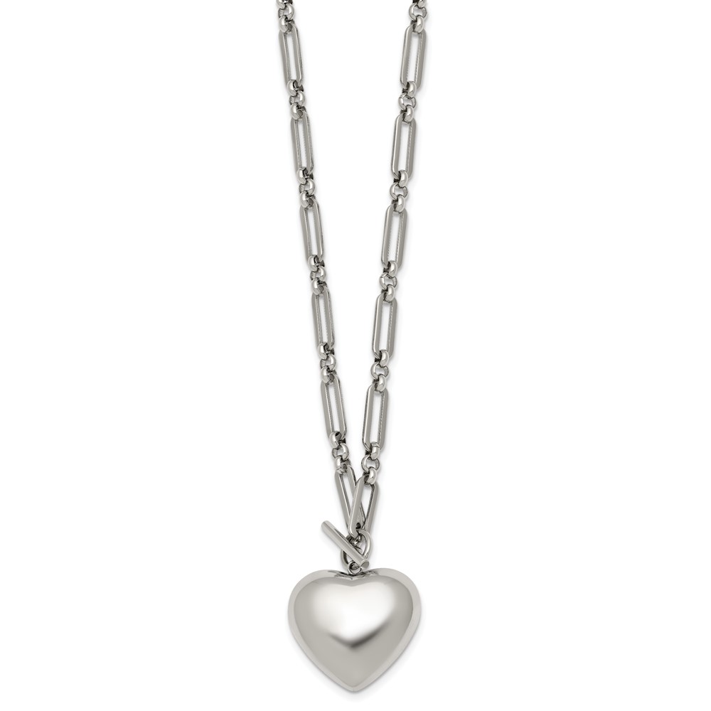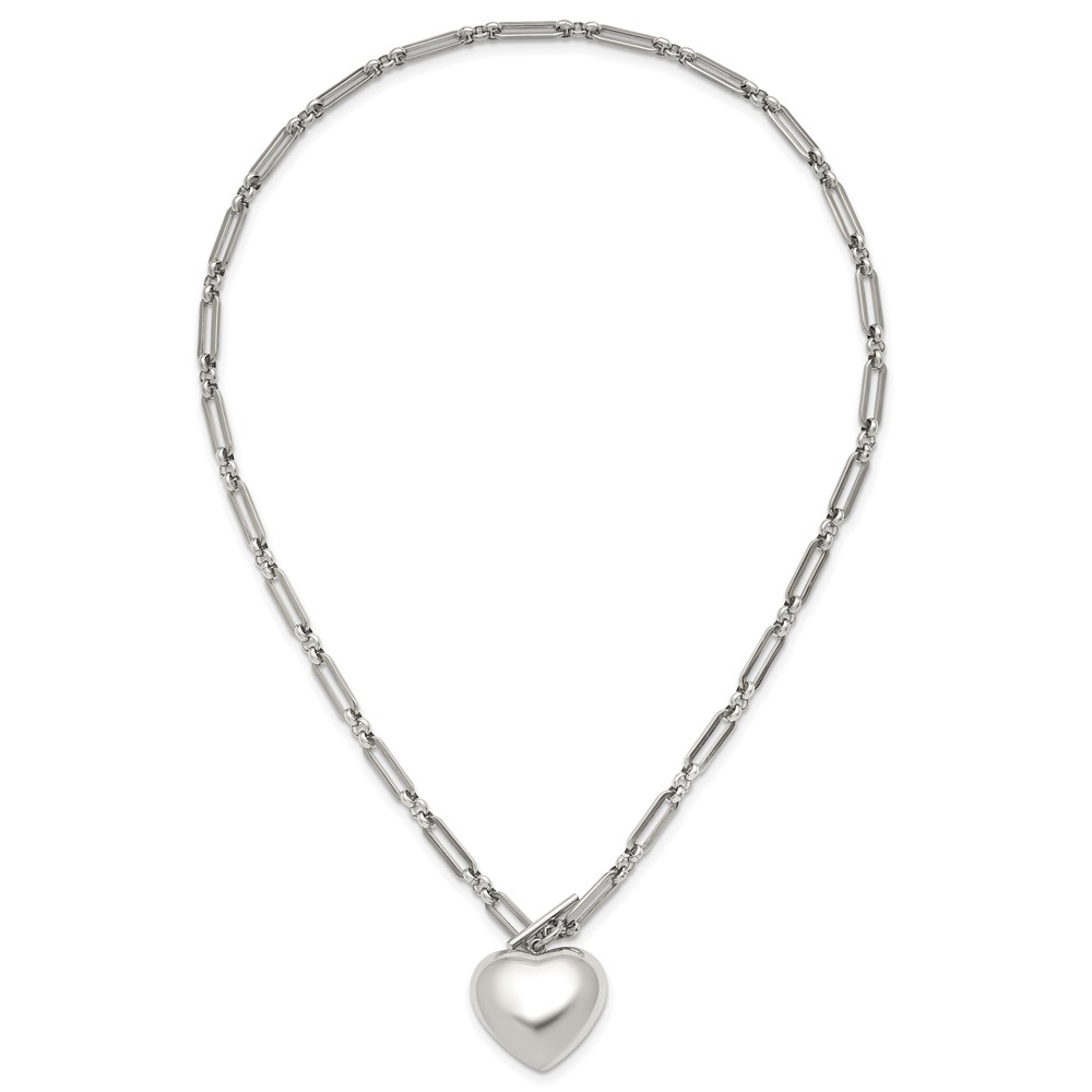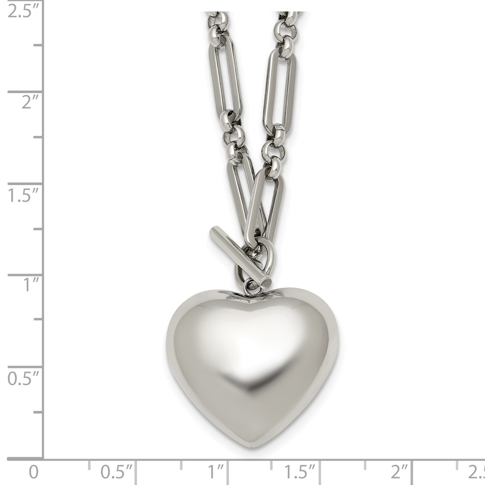 Stainless Steel Polished 3D Heart Open Link 18in Necklace