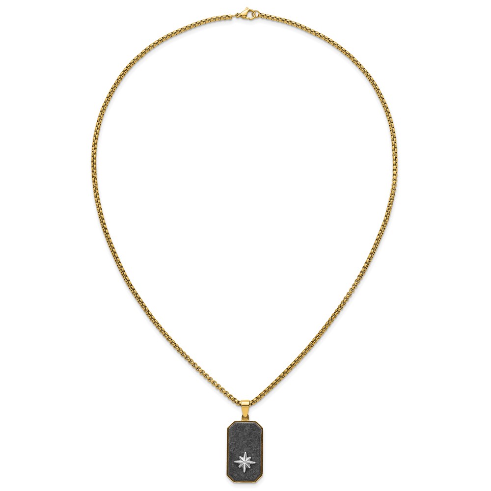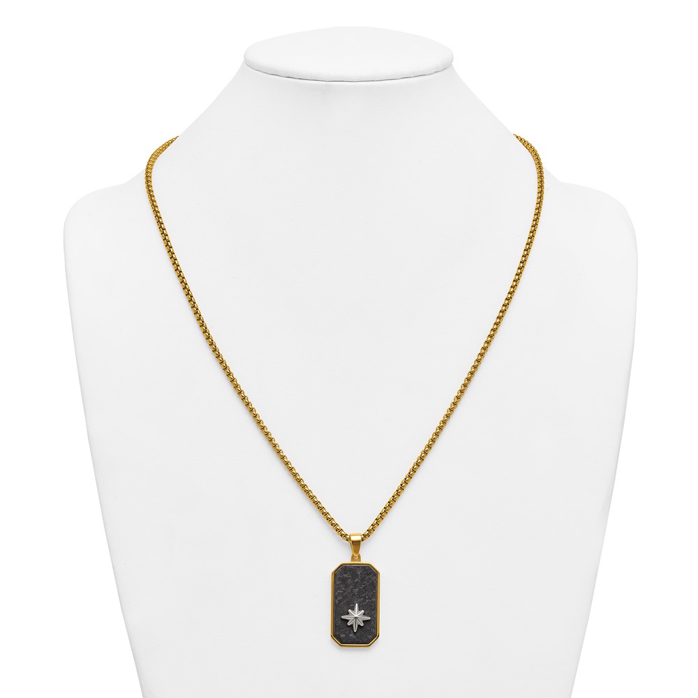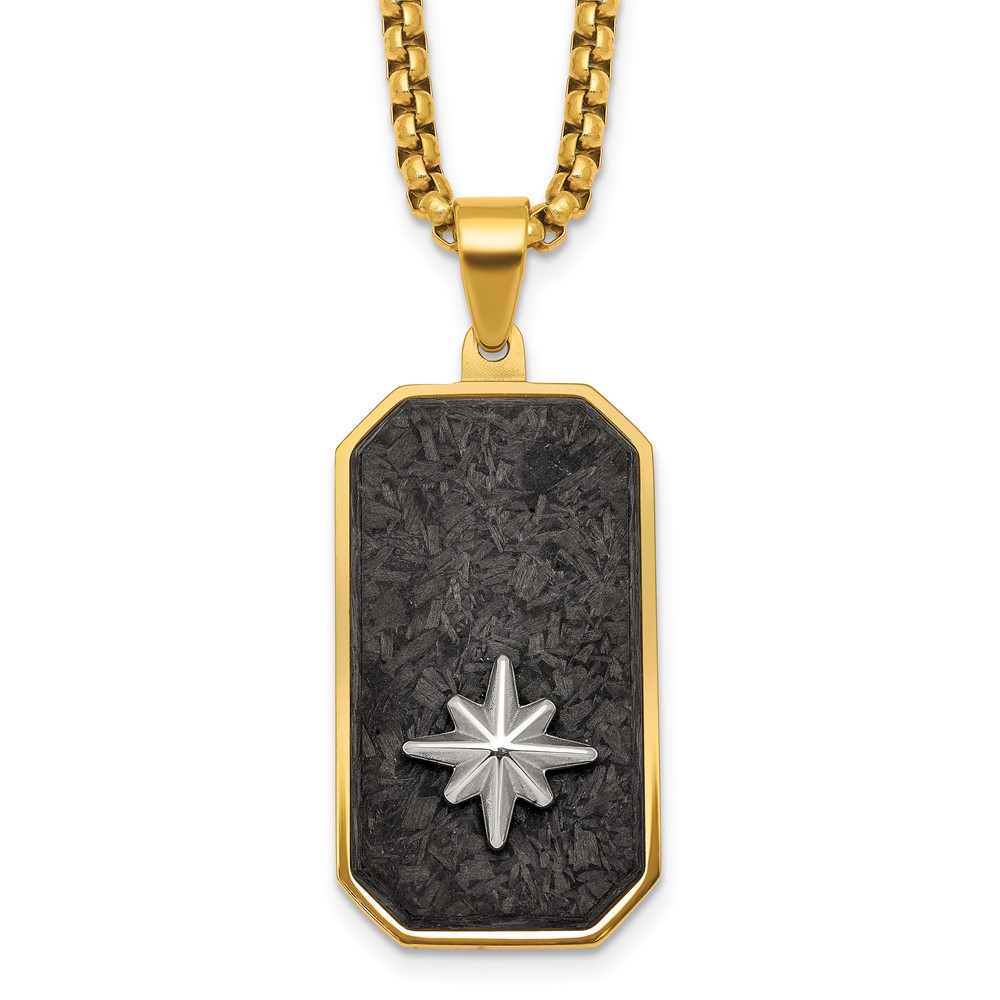 Stainless Steel Polished Yellow IP Blk CarbonFiber Inlay DogTag Necklace