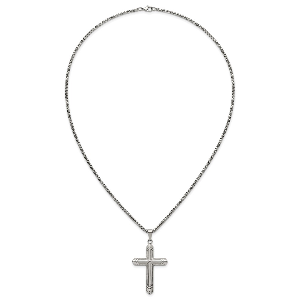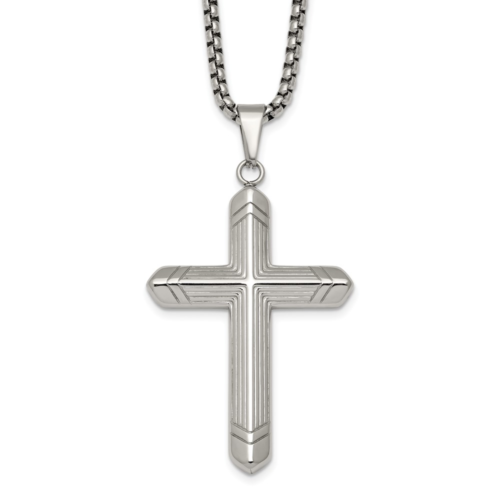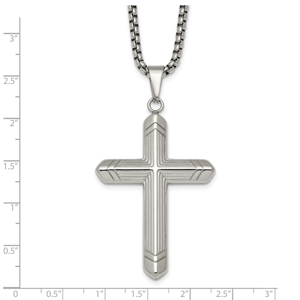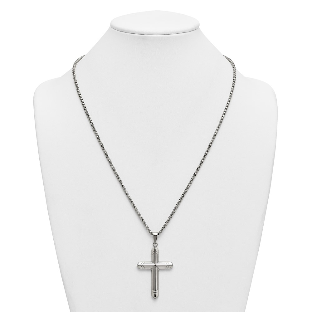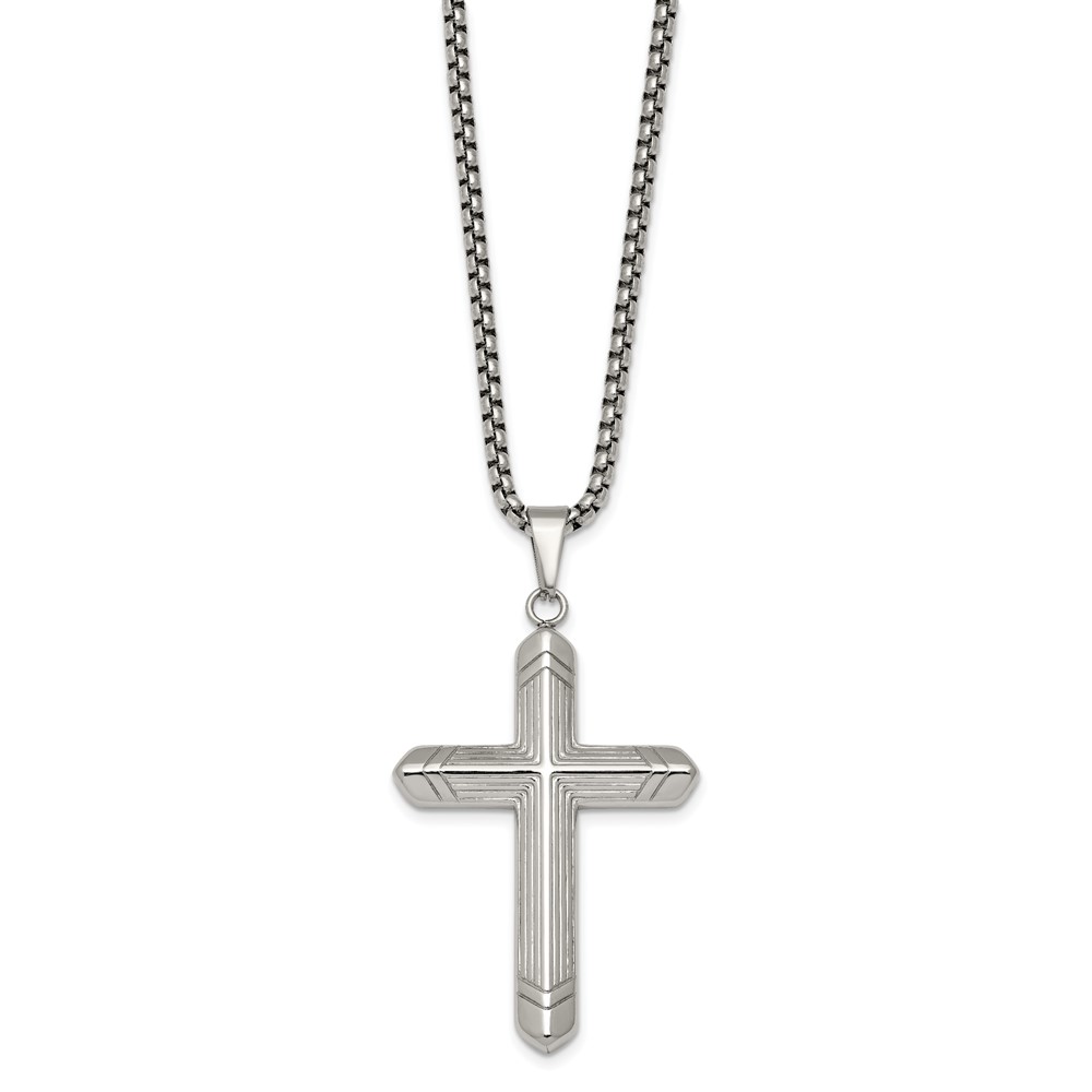 Stainless Steel Polished and Textured Cross 24in Necklace