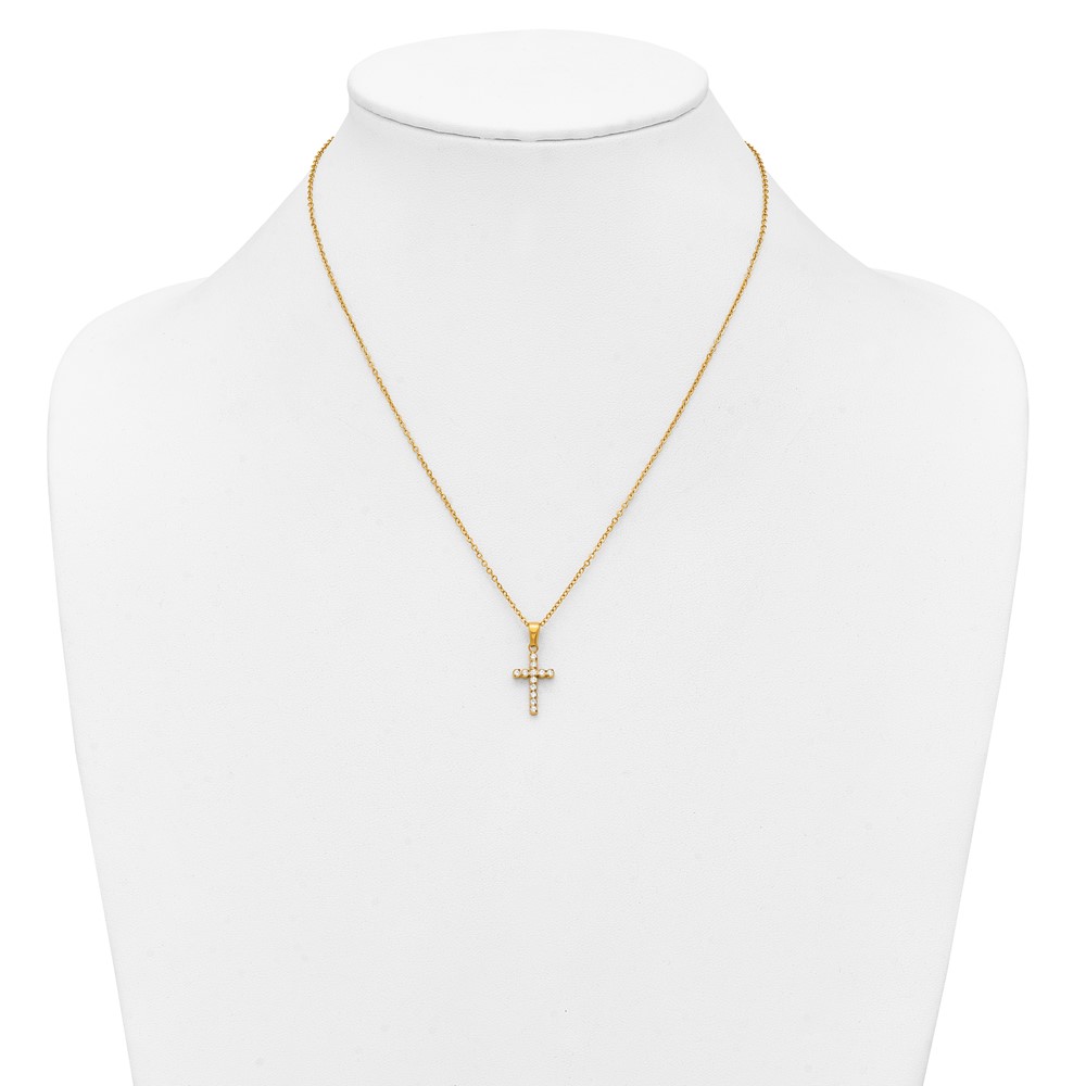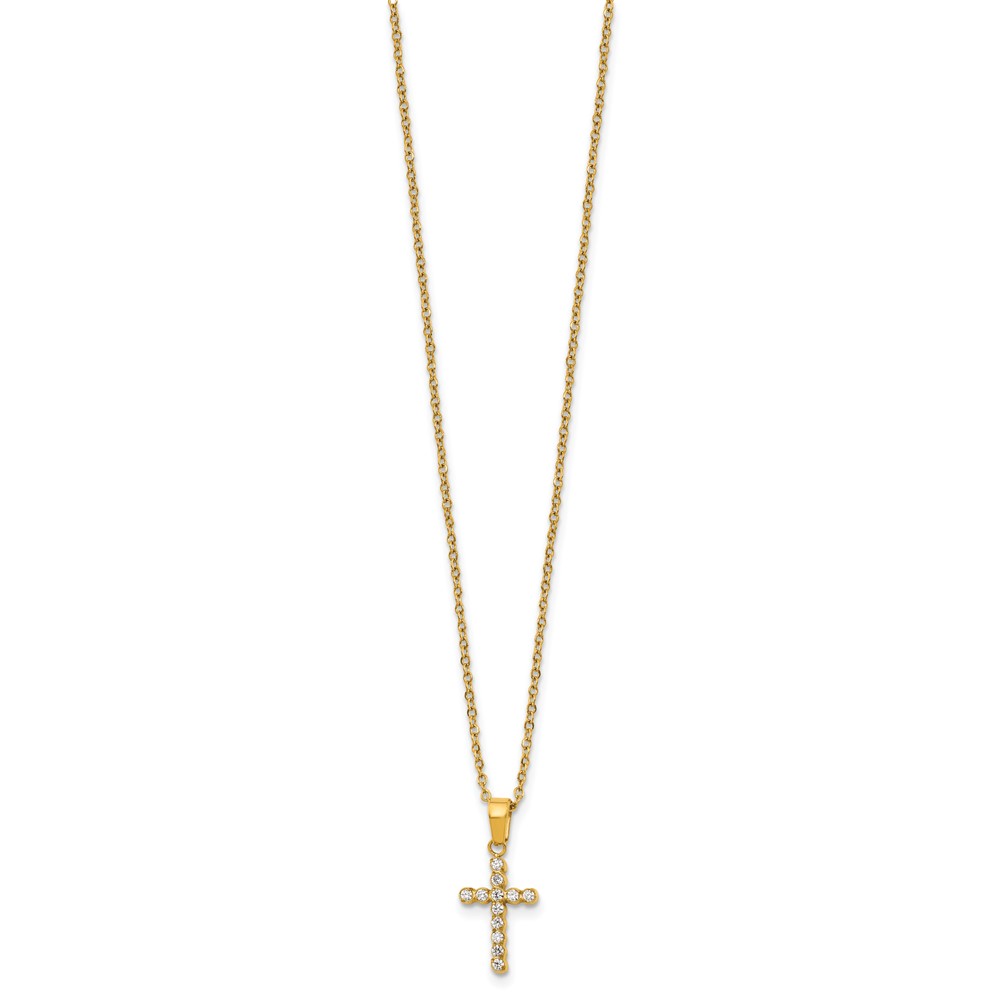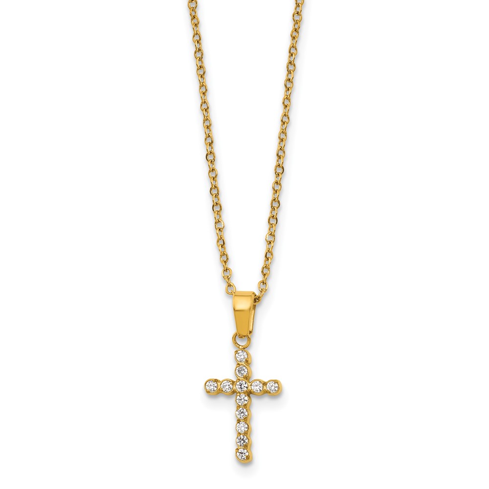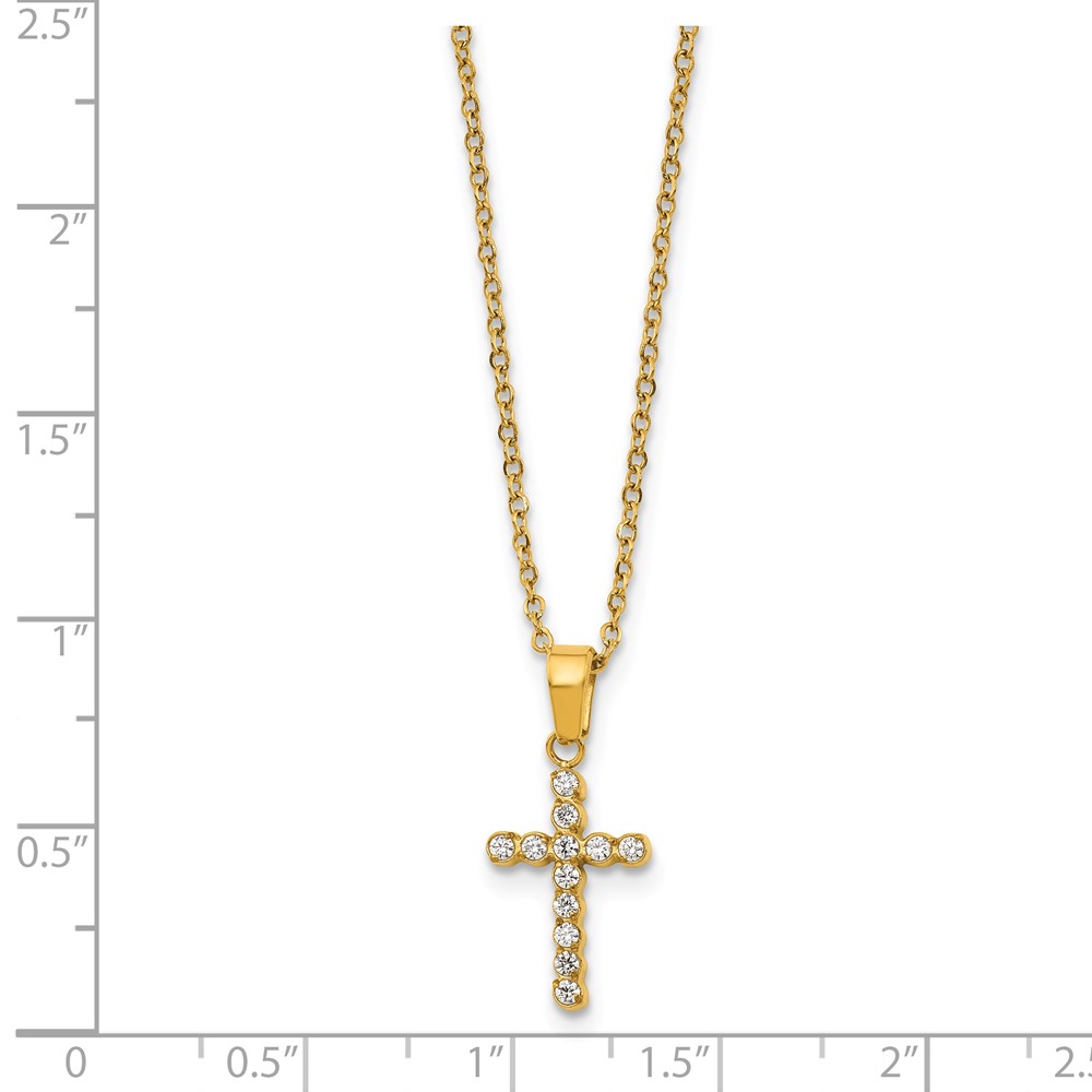 Stainless Steel Polished Yellow IP-plated CZ Cross 18in w/2in ext. Necklace