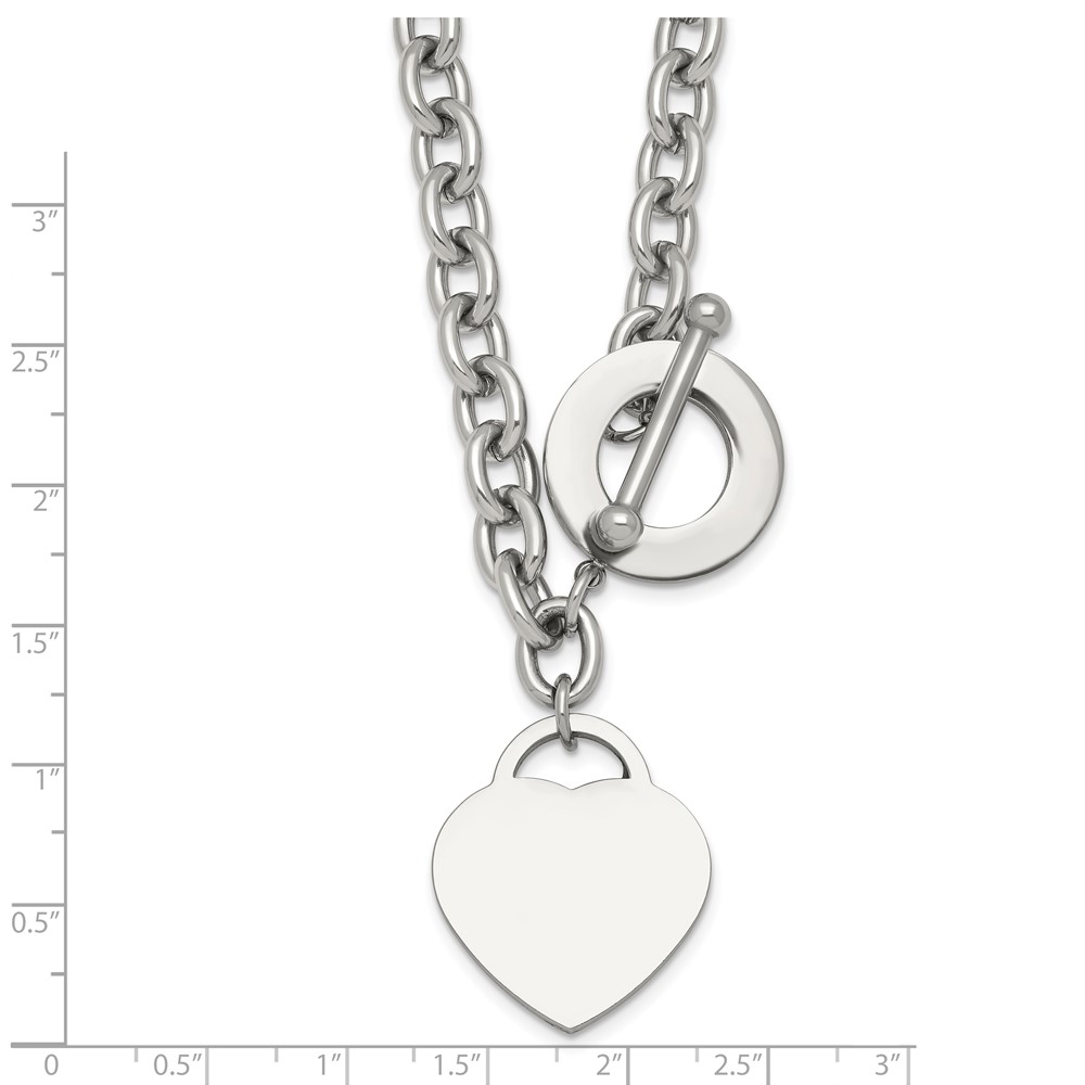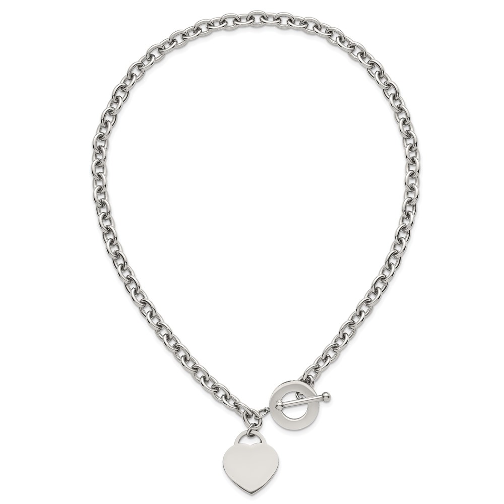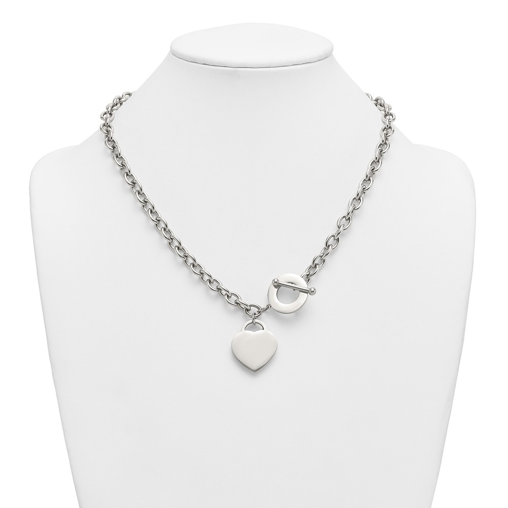 Stainless Steel Polished Heart Charm 20in Toggle Necklace