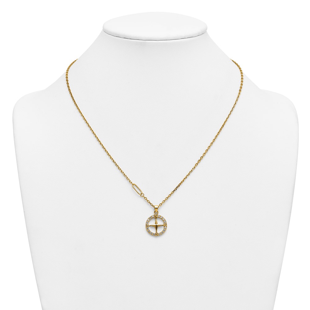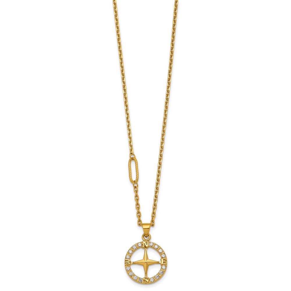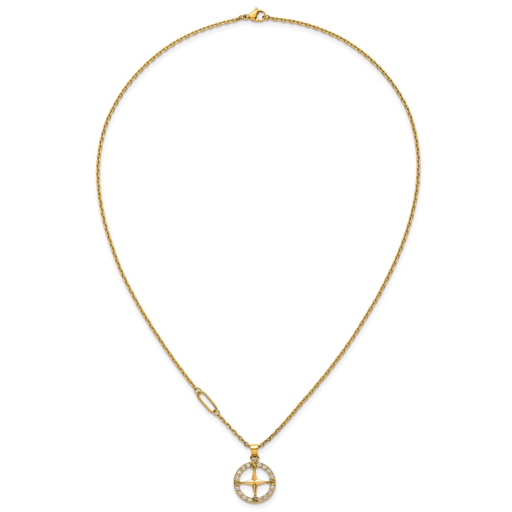 Stainless Steel Polished Yellow IP-plated CZ Compass 20in Necklace