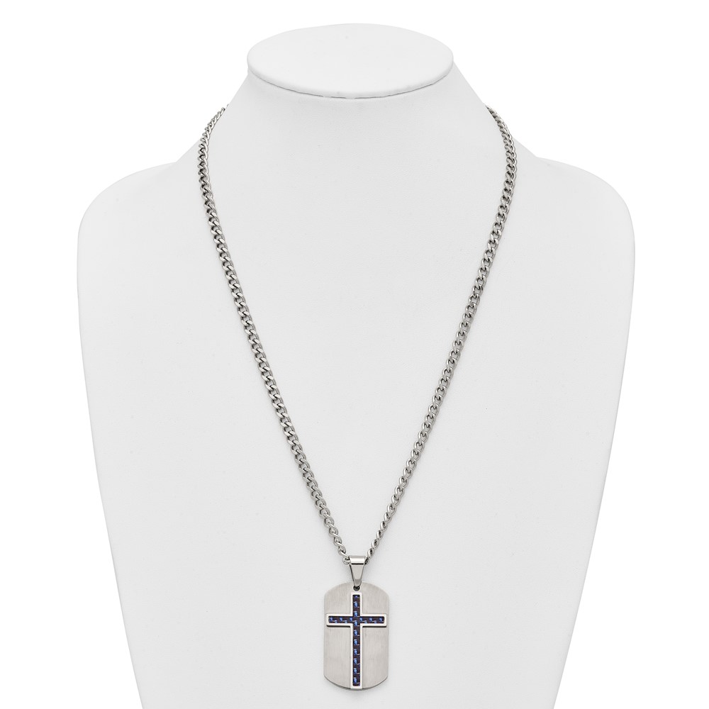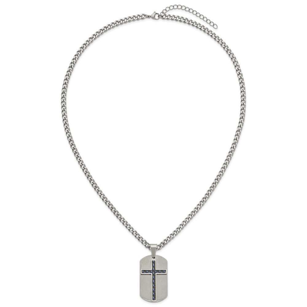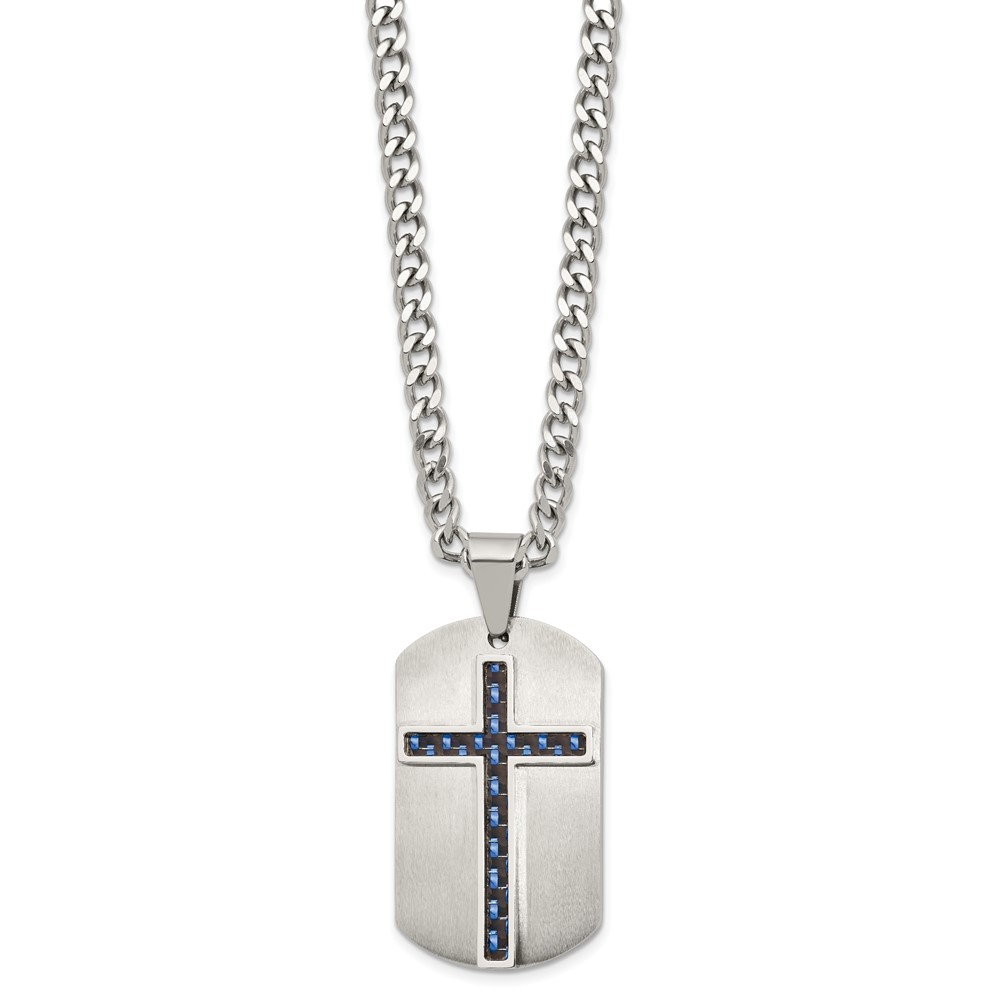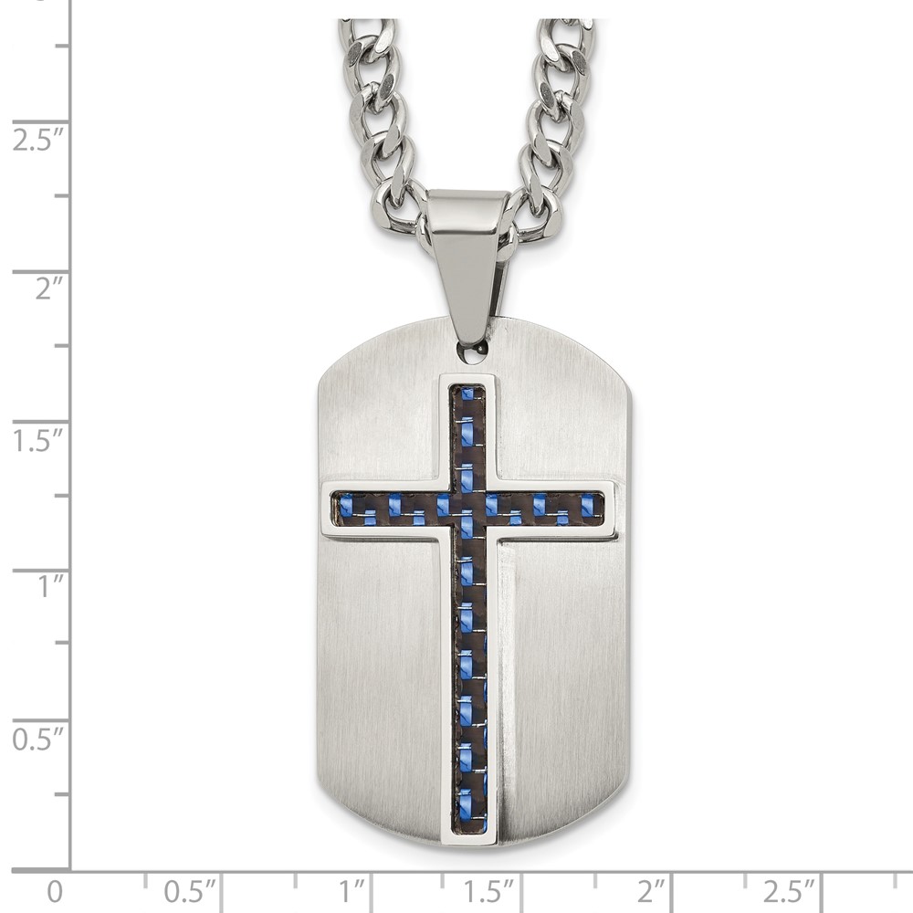 Stainless Steel Brushed Polished CarbonFiber Inlay Cross w/2in ext Necklace