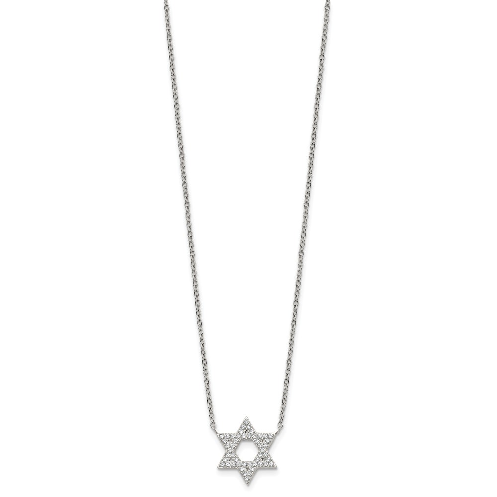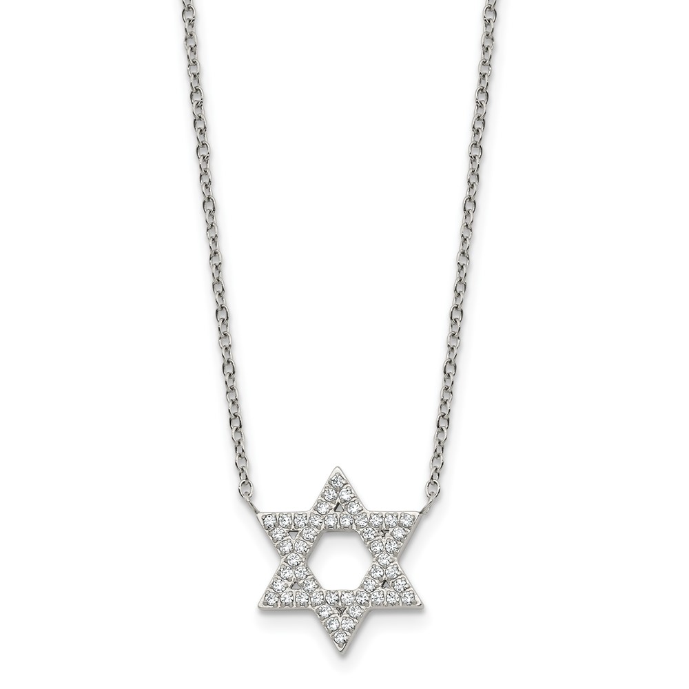 Stainless Steel Polished w/CZ Star of David w/2in ext. 18in Necklace