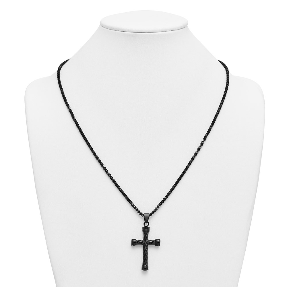 Stainless Steel Polished Black IP Twisted Cross 24in Necklace
